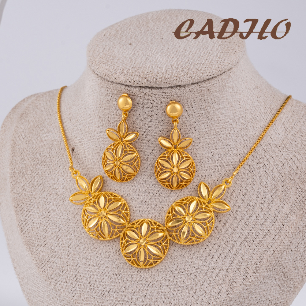 CADILO Dubai 24K Gold Jewelry suit Nigeria Women Necklace Earrings Bride Wedding Two Piece Set