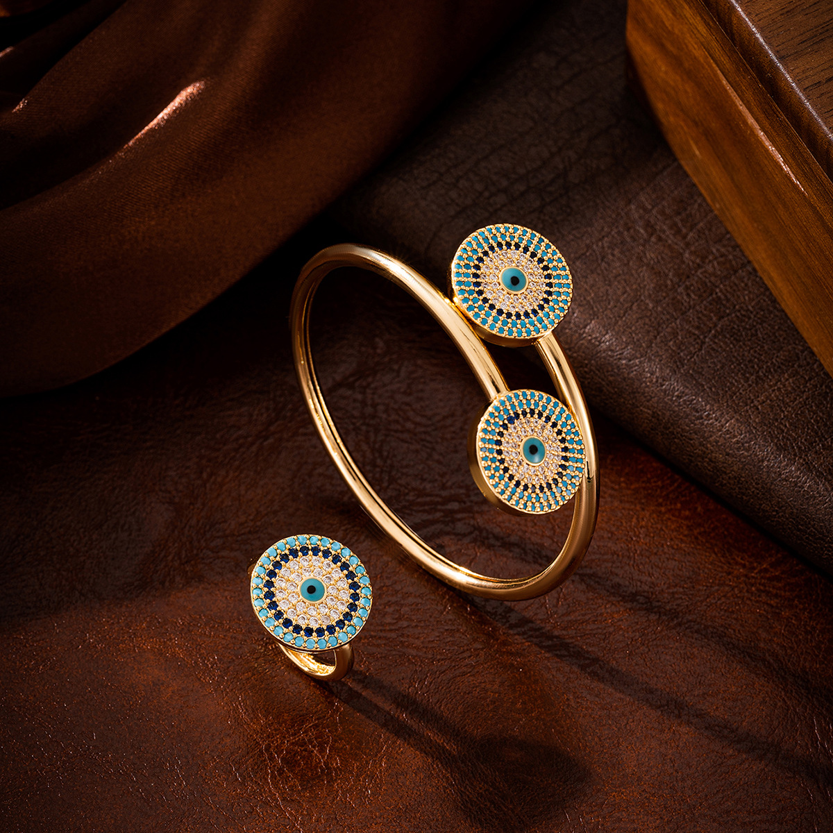 New Colorful Zircon Eye Bracelet Ring suit Palace Style Dubai Bride Wedding Accessories Opening Ring Bracelet