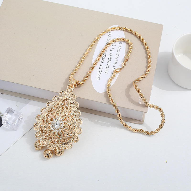 Dubai Golden Retro Fashion High Diamond-encrusted Hip Hop Large Pendant Necklace Double Layer Hollow New Necklace