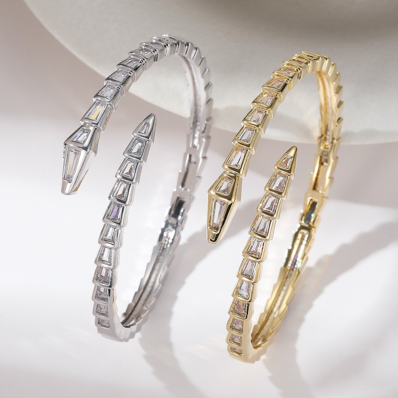 Baojia Open Snake Bracelet Simple and Elegant European and American Hot-Selling Jewelry Dubai Copper Plated Real Gold Smooth Zircon Bracelet