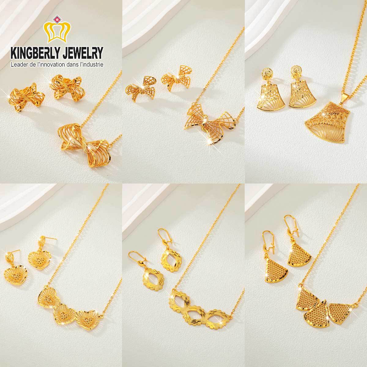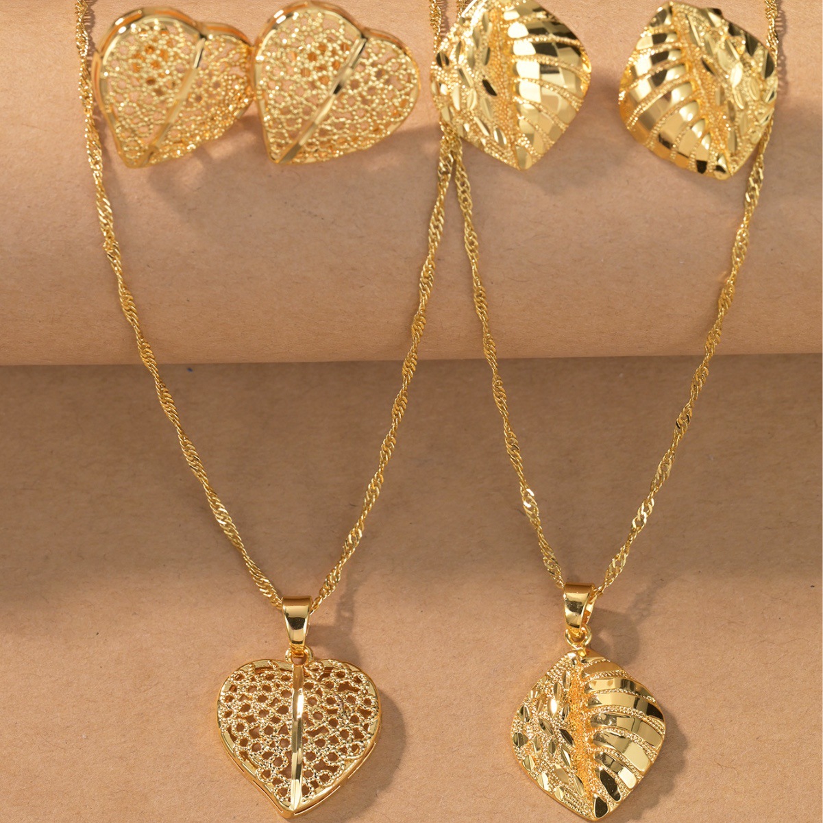 Casual Dubai Fashion 24K Gold Plated Women's Light Luxury Love Small Pendant Bow Necklace Exquisite Earrings Jewelry