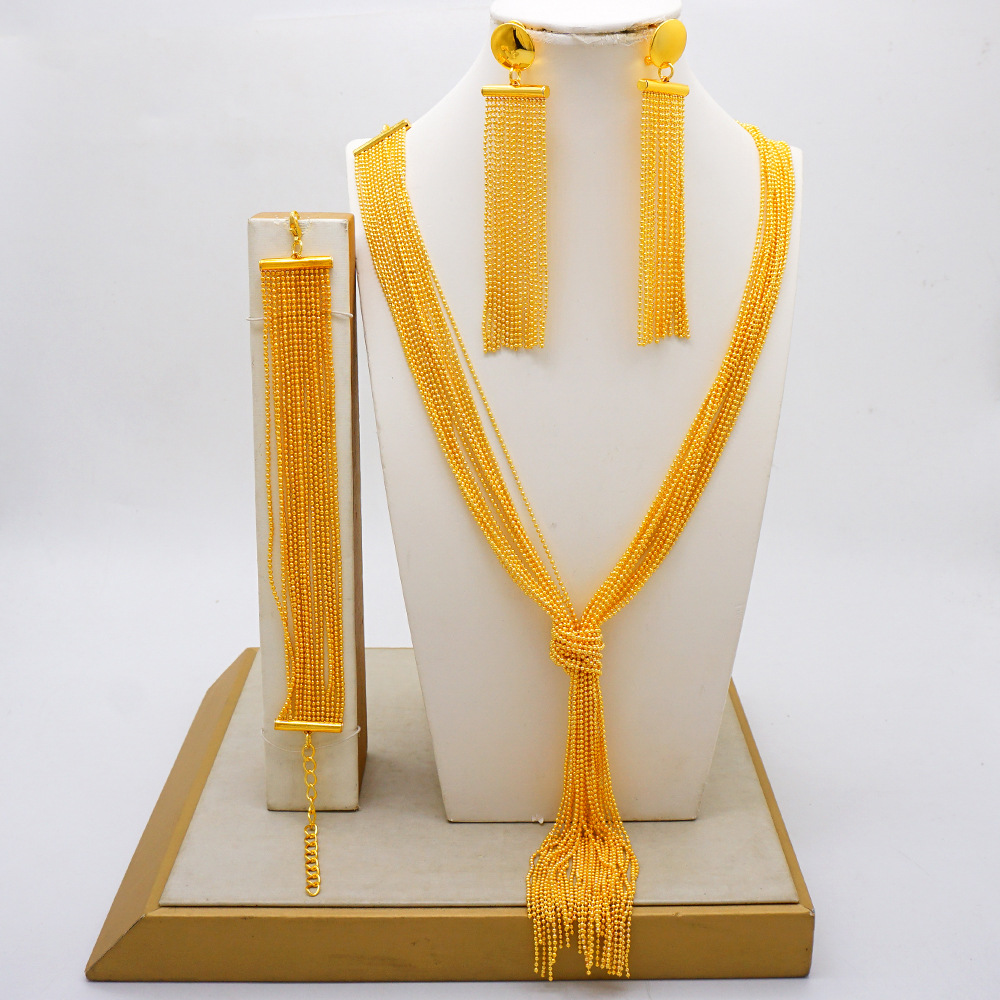 Long Dubai Gold Plated Necklace Earrings suit African Jewelry Dubai Long necklace Set
