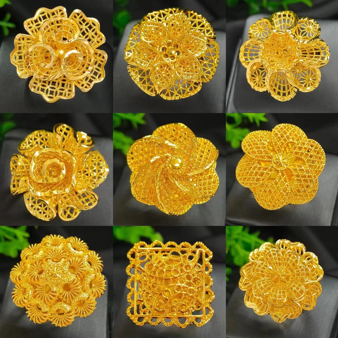 24k cross-border 3D three-dimensional flower imitation gold ring jewelry Middle East Dubai jewelry Vietnam sand gold ring wholesale