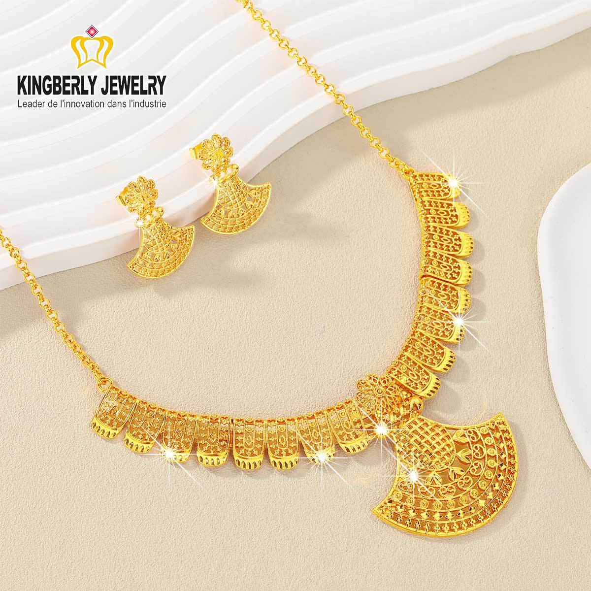 Middle Eastern Pendant Necklace and Earring Set 18K Gold-Plated Copper Dubai Wedding Earrings Collarbone Chain Two-Piece Jewelry Set