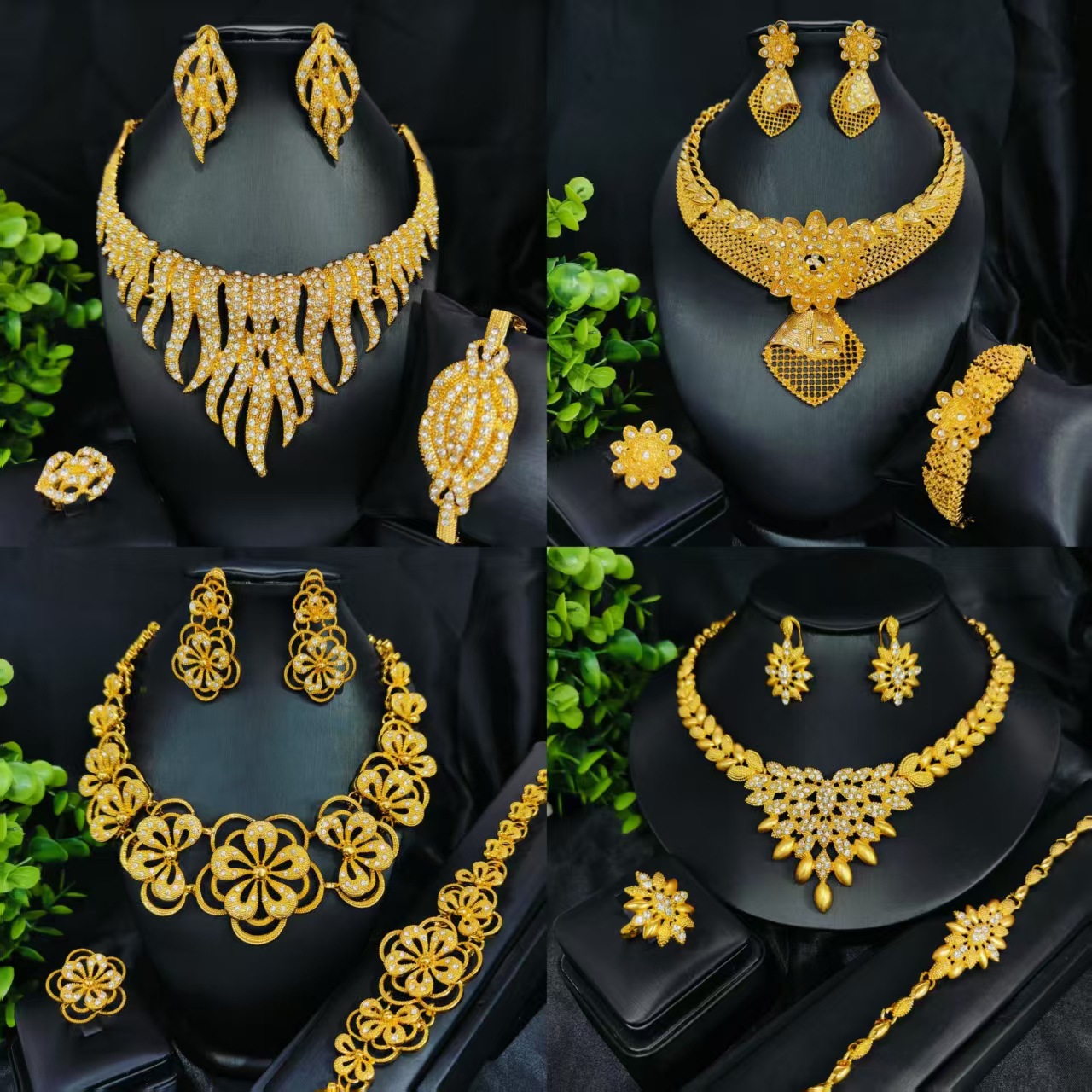 24K Dubai Gold Jewelry Bride Necklace Bracelet Earrings Ring Four-piece Set African Women Jewelry suit Wholesale