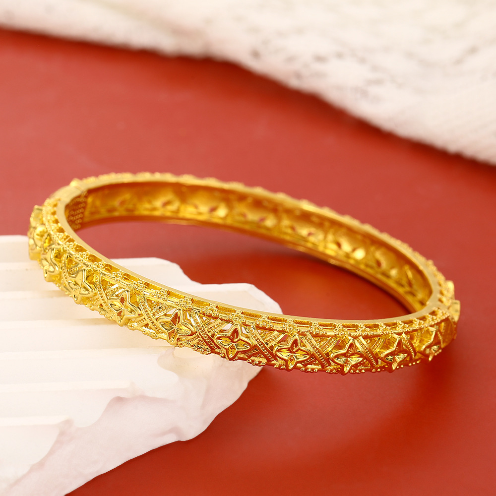New Hollow Retro Carved Bracelet Vietnamese Sand Gold Buckle Bracelet Jewelry Women's Dubai Wedding Style Bracelet