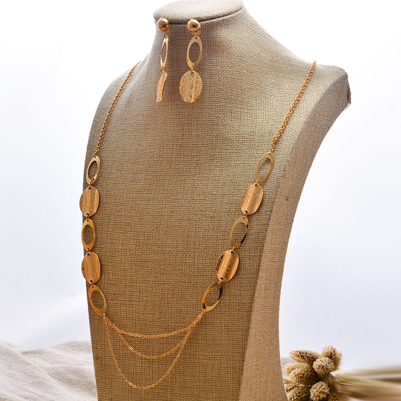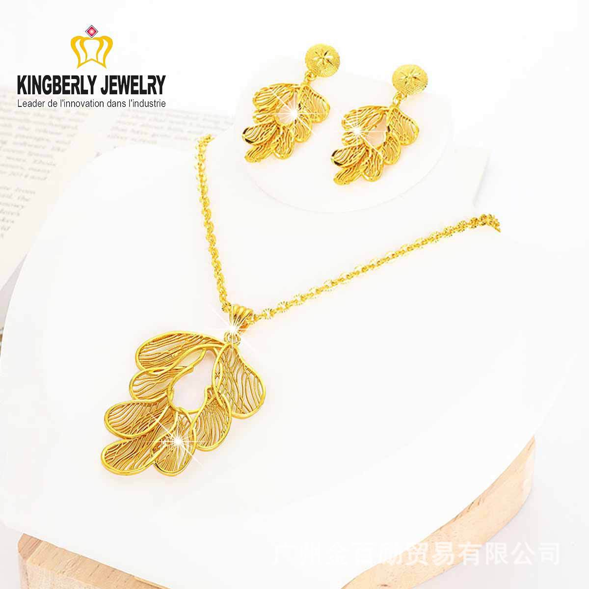 Supply Dubai sand gold flower water chestnut shape pendant necklace earrings two-piece elegant bridal jewelry set