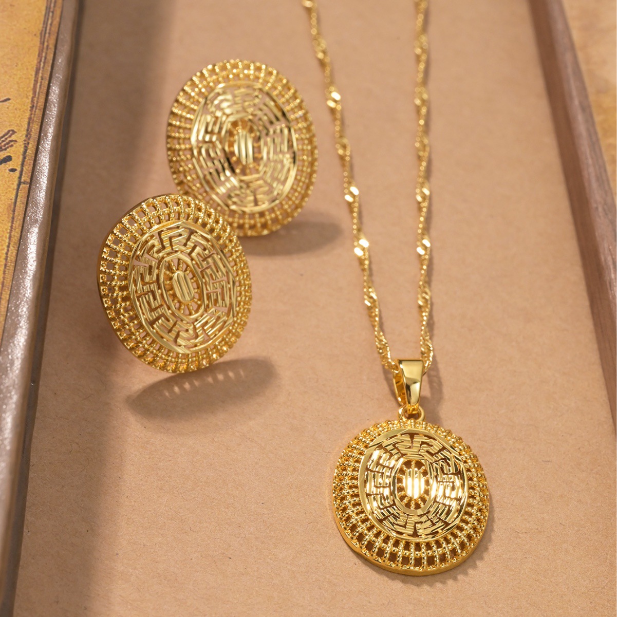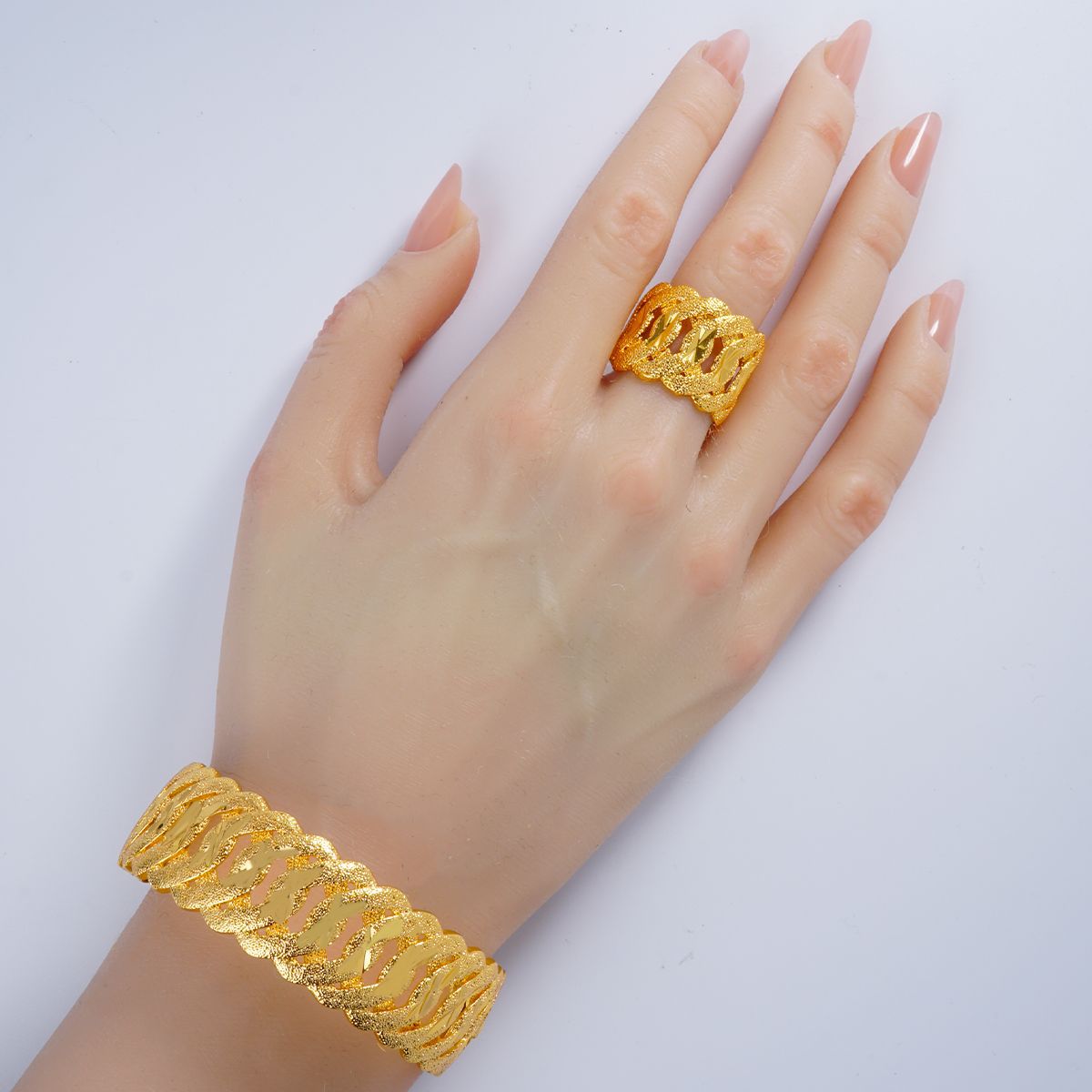 Middle East Dubai Style Copper Plated 24K Real Gold High-End Bracelet Ring Set Fashion Jewelry Wholesale