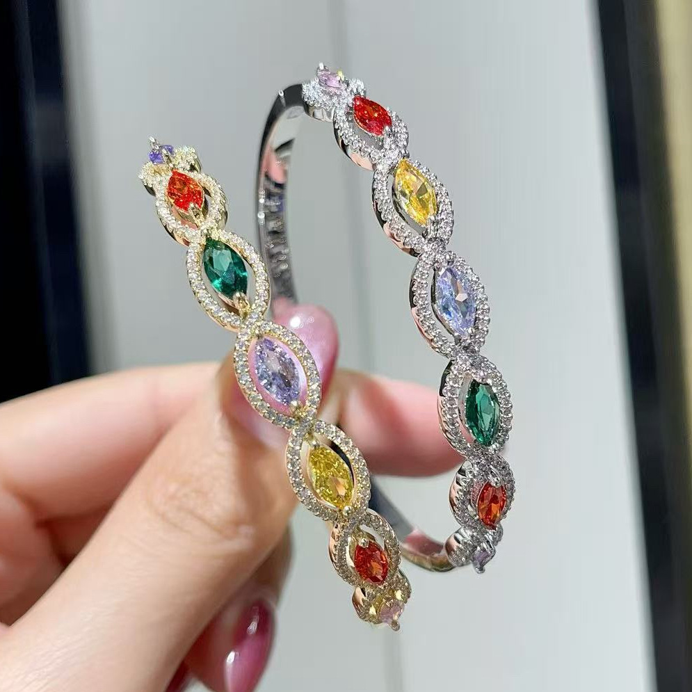Colorful Zircon Bracelet, High-End Jewelry, Middle Eastern Dubai Gold-Plated Jewelry, Internet Celebrity Hot Style, Versatile for Commuting Women