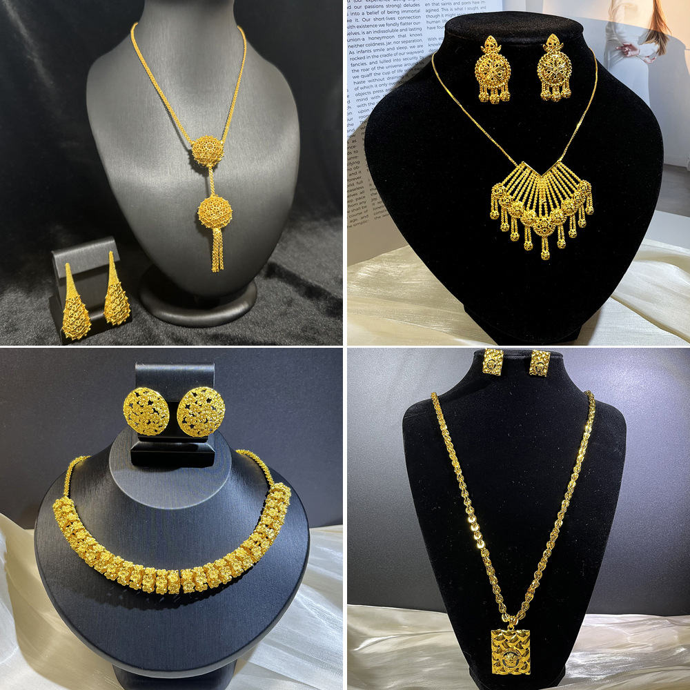 Africa Dubai Middle East Gold Jewelry Set Bridal Necklace Earrings Jewelry European and American Fashion Women's Accessories