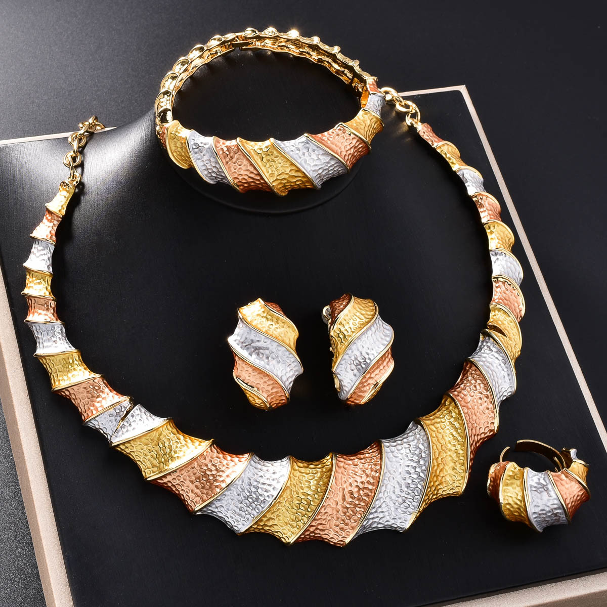 Cross Border Jewelry Dubai 18K Gold Thread Exaggerated Necklace Earrings Ring Bracelet Bohemian Jewelry suit