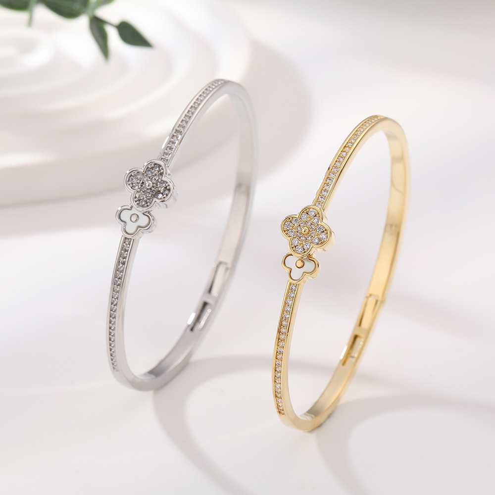 Cross-Border Popular Four-Leaf Clover Open Bracelet Light Luxury High-End Fashion Jewelry Full Diamond Lucky Clover Diamond Bracelet for Women