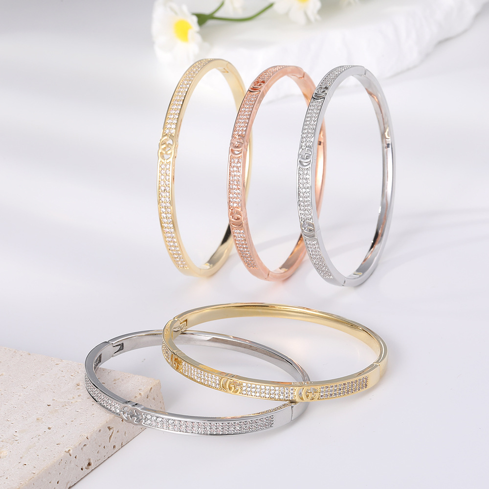 Korean Version Tiktok Influencer Style Women's Bracelet Cross-Border Popular Light Luxury Textured Jewelry Daily Wear Full Diamond Bracelet