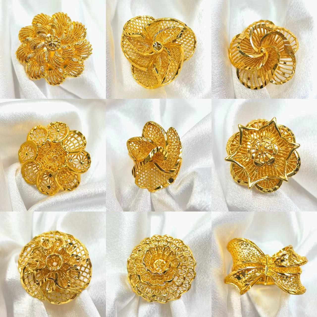 Cross-Border Hot-Selling Exquisite 24K Gold Flower Women's Ring That Does Not Fade Niche Design Middle East Dubai Elegant Wholesale