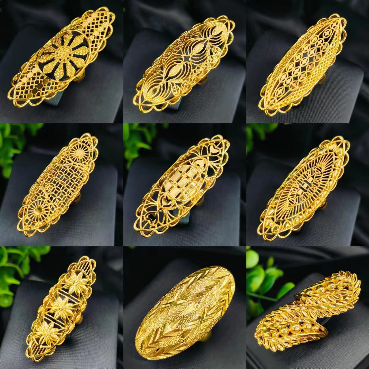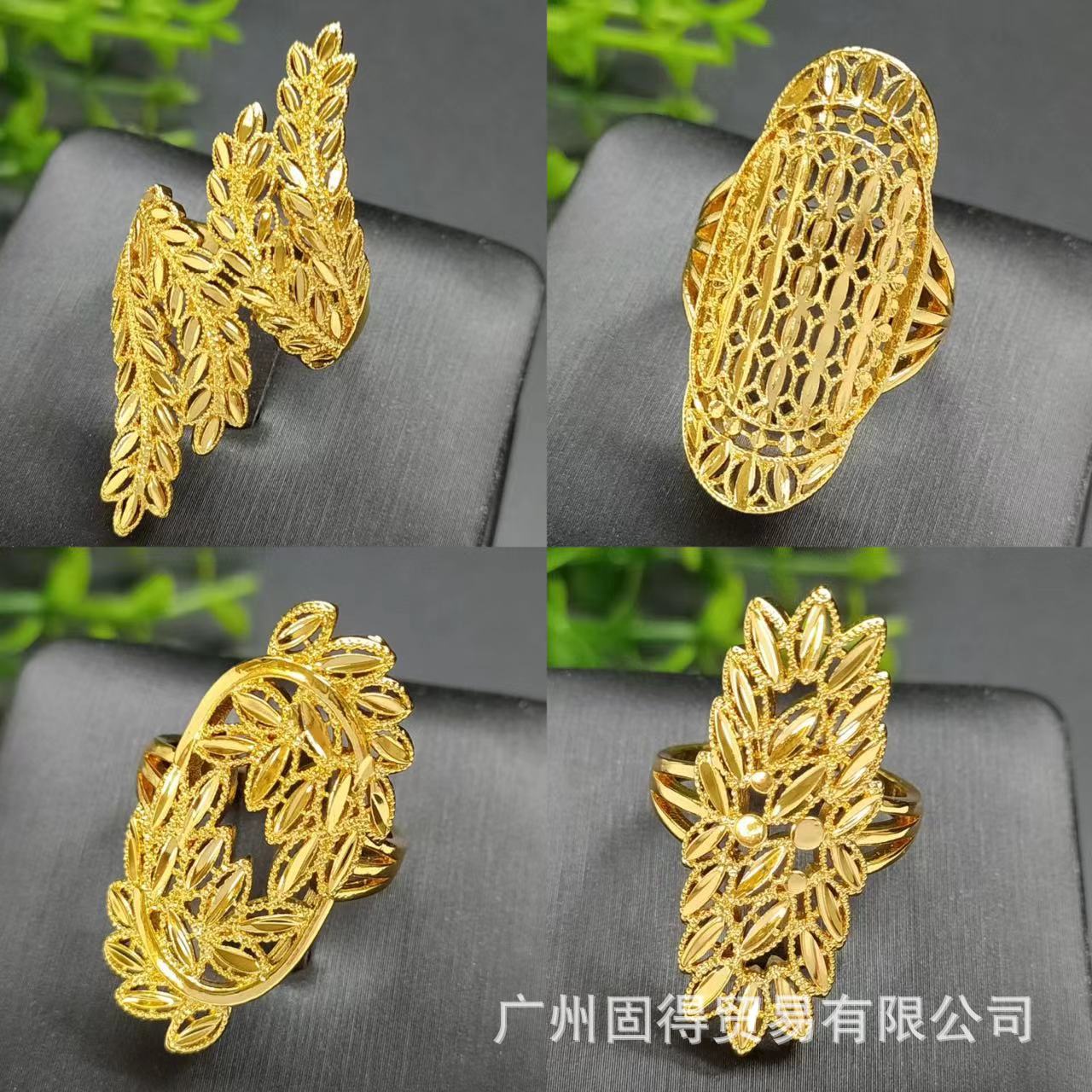 Cross-border selling exquisite 24k gold flower ladies ring does not fade niche design Middle East Dubai temperament wholesale