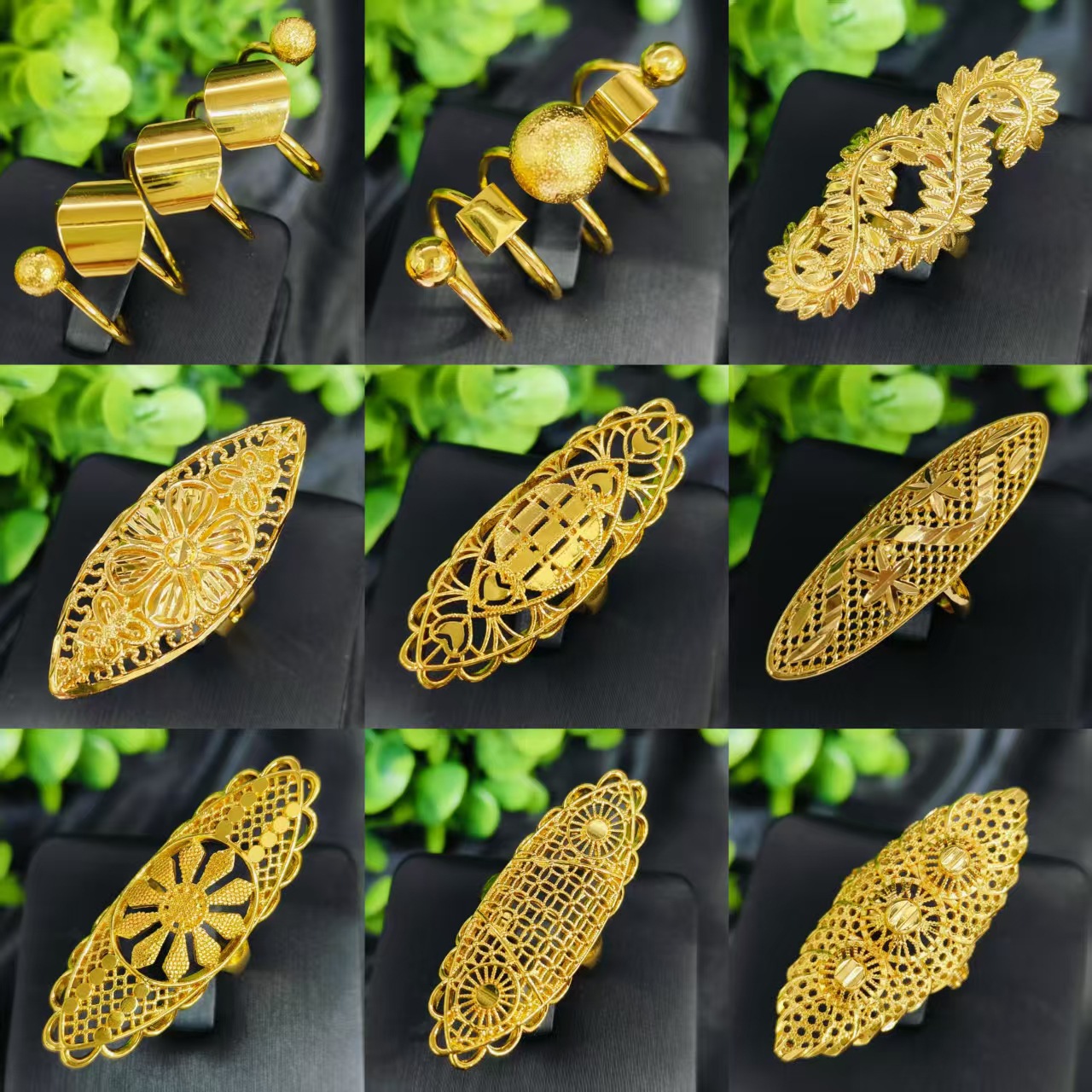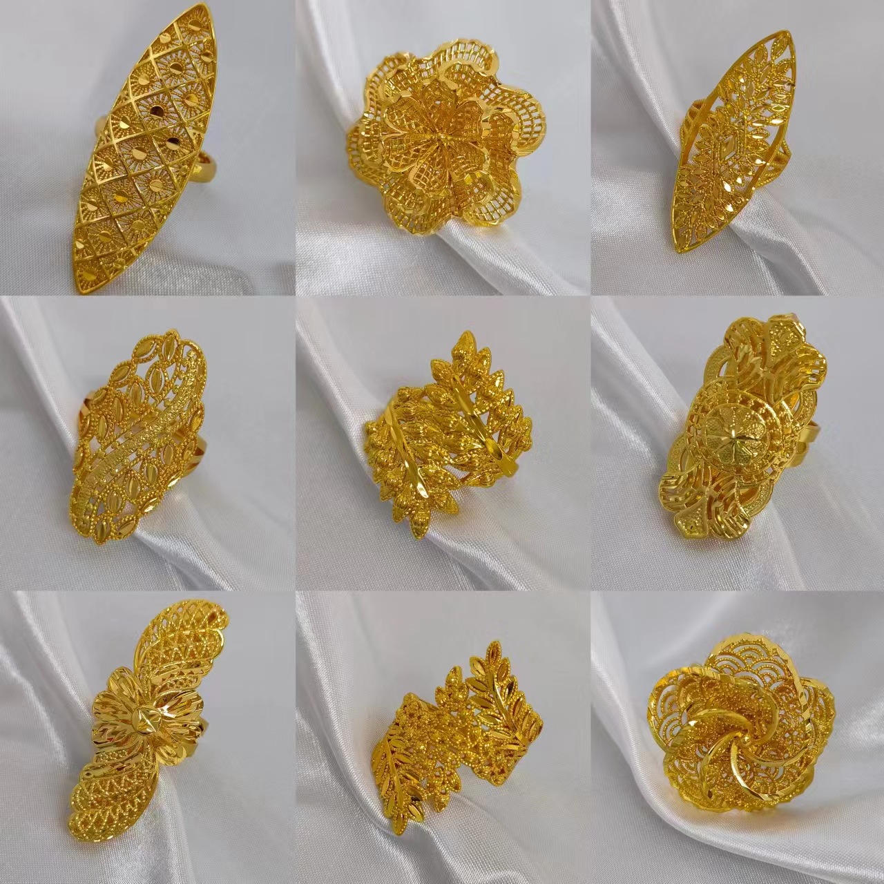 Dubai 24K Gold Hollow Flower Ring Women's India Africa Europe and America Wedding jewelry Cross Border Ring jewelry
