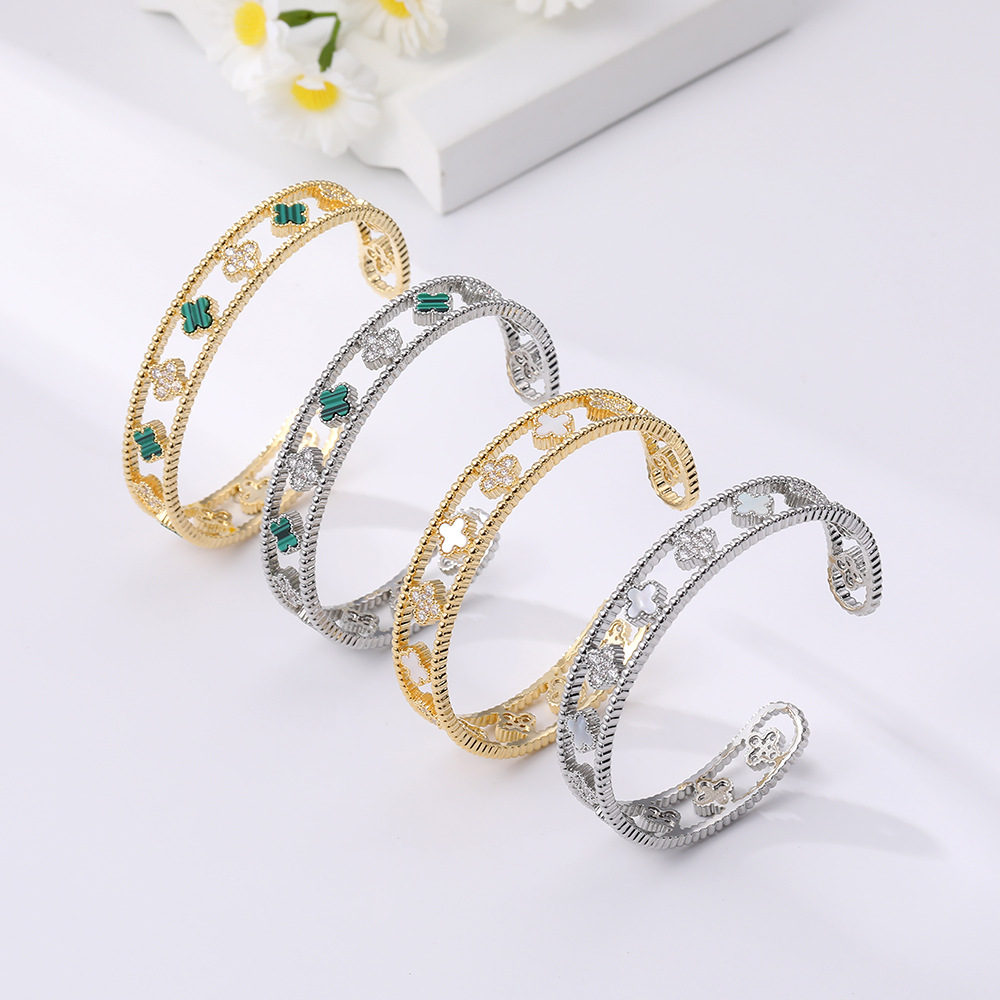 European and American Open Bracelet for Women, High-End Zircon Flower Four-Leaf Clover Bracelet, Four-Petal Flower Cross-Border Popular Bracelet