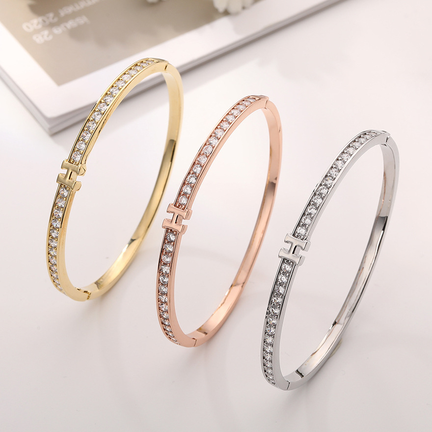 Letter Full Diamond Zircon H Bracelet European and American Accessible Luxury Elegant Claw Set Large Round Diamond Bracelet Bracelet Female Real Gold Electroplating 14K