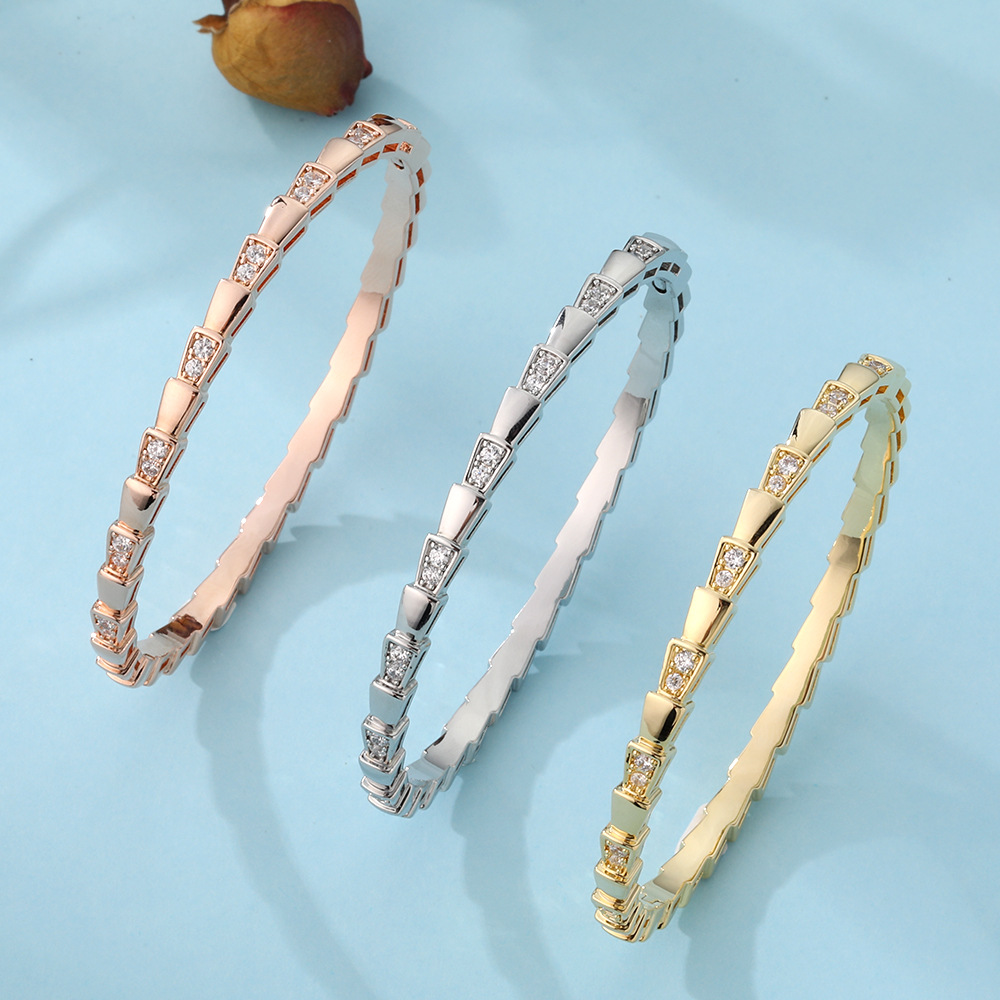 5A Heterosexual Micro-inlaid Zircon Snake Bracelet Female Niche Design Advanced Sense Bracelet Female Internet Celebrity Explosive Open Bracelet