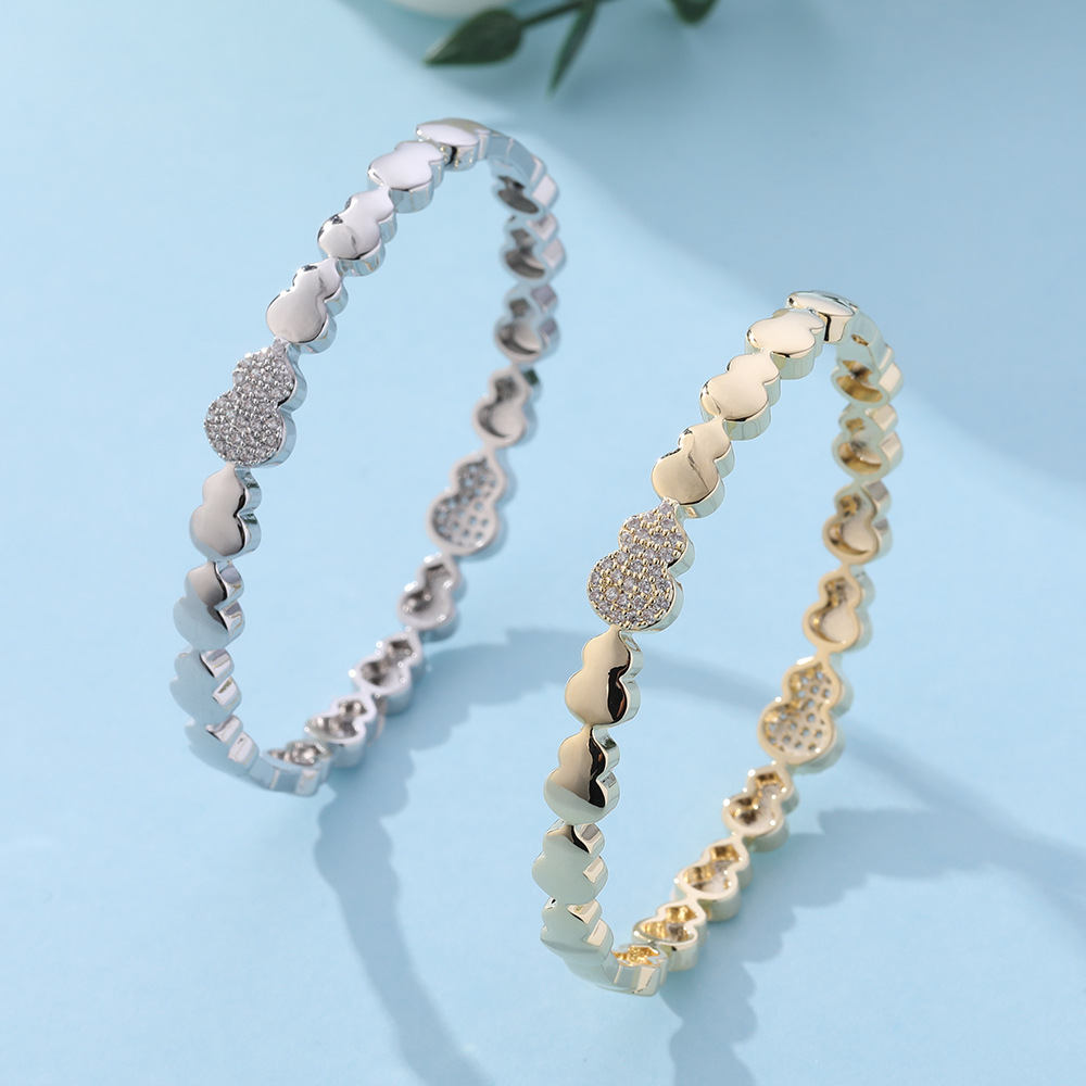 Chinese Style Glossy Diamond-Encrusted Zircon Gourd Bracelet Xiaohongshu Popular Light Luxury High-End Bracelet Exquisite Versatile Bracelet