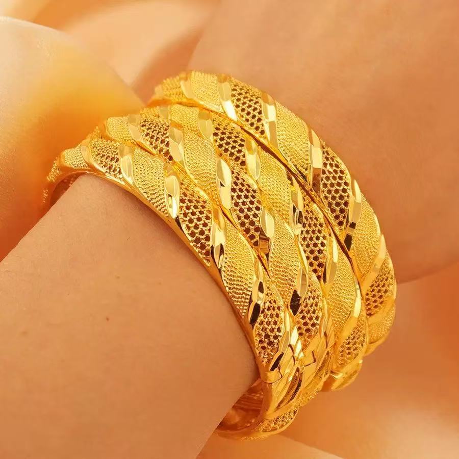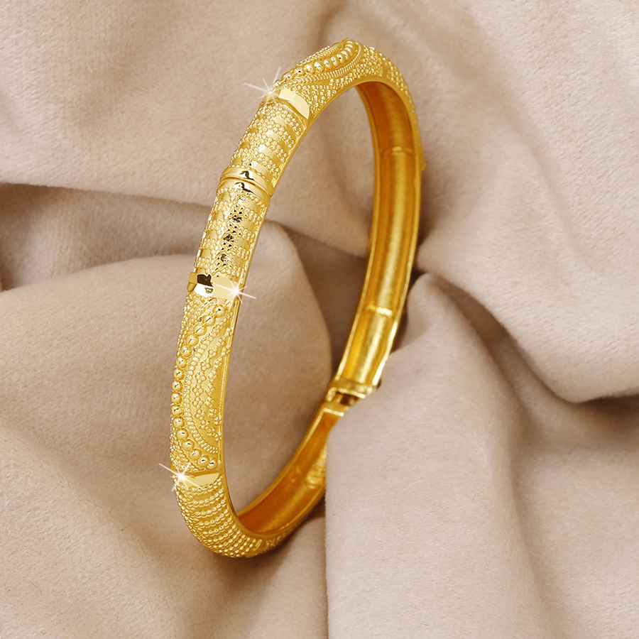 Cross-Border Middle East Hot-Selling Copper Gold-Plated 24K Bracelet Dubai Bride Women's Wedding Sand Gold Jewelry Personalized Trend