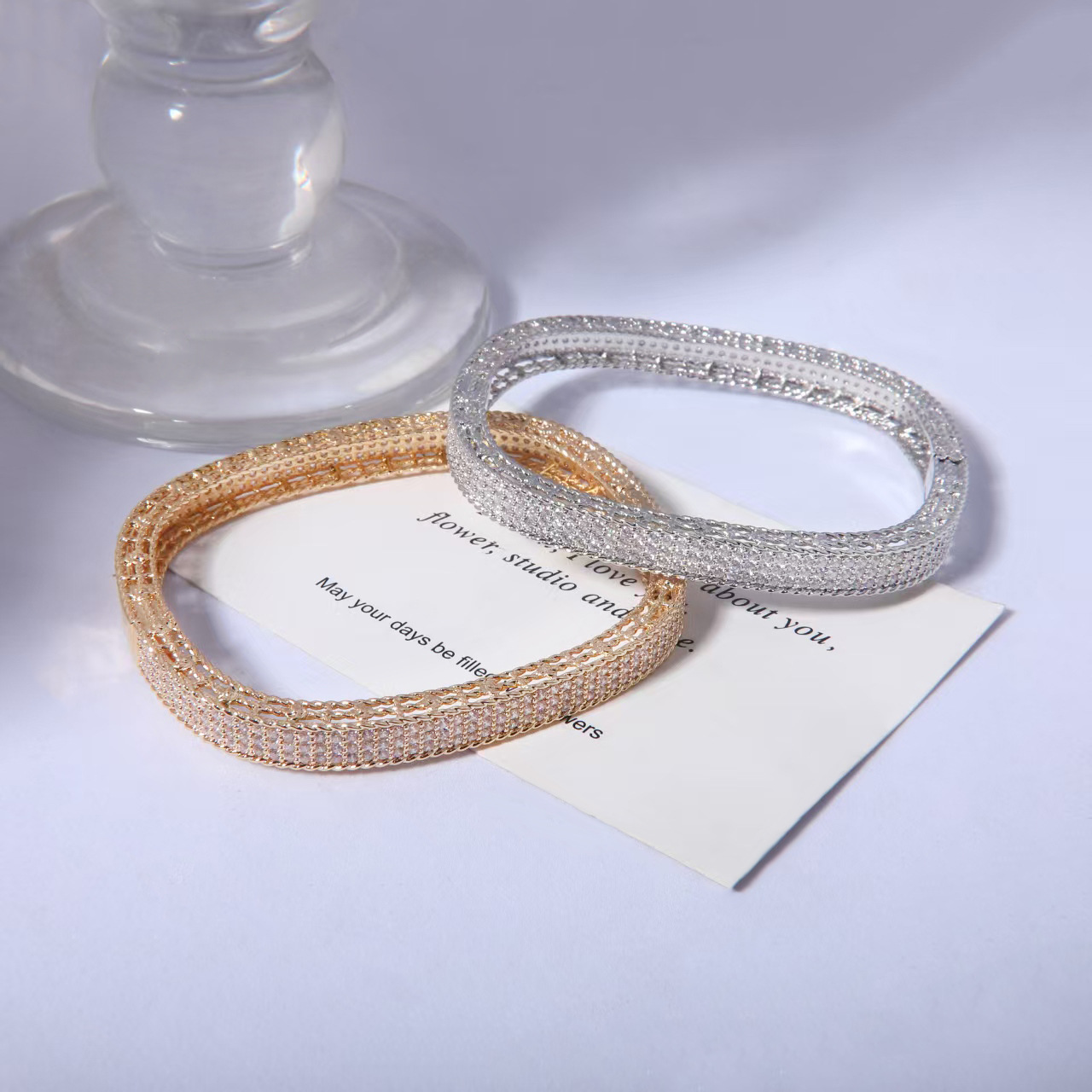 High-End Light Luxury Full Diamond Bracelet Middle East Dubai Square Copper Gold-Plated Jewelry European and American Cross-Border Baby's Breath Diamond Bracelet