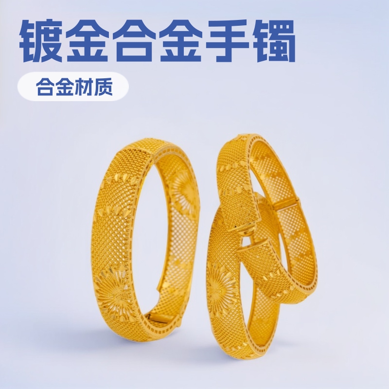 Cross-Border Dubai 24K Gold-Plated Bracelet Indian Bride Wedding Jewelry Gold Bracelet Middle Eastern Women's Bracelet Wholesale