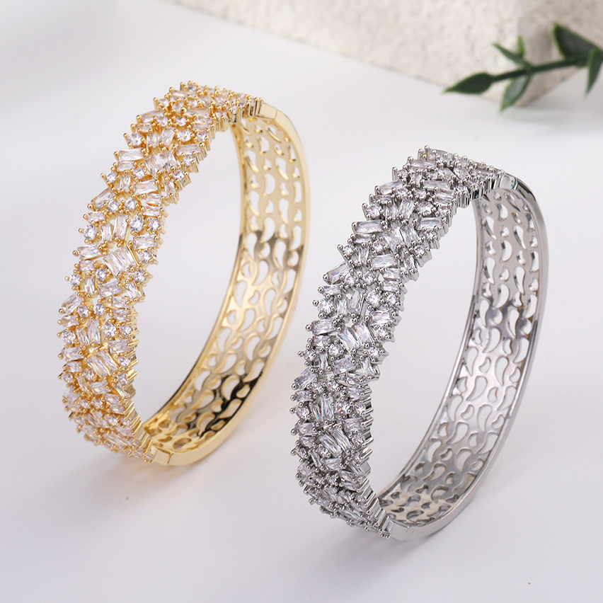 Cross-border European and American Heavy Industry Fashion Bracelet Simple Hollow Full Diamond Zircon Bracelet Gimono High-grade Jewelry