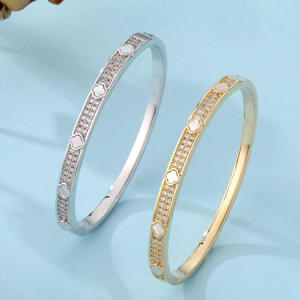 Natural Shell Four-Leaf Clover Bracelet with Starry Zirconia Row Diamond Bracelet Kajia Cross-Border Popular Narrow Version Bracelet Wholesale