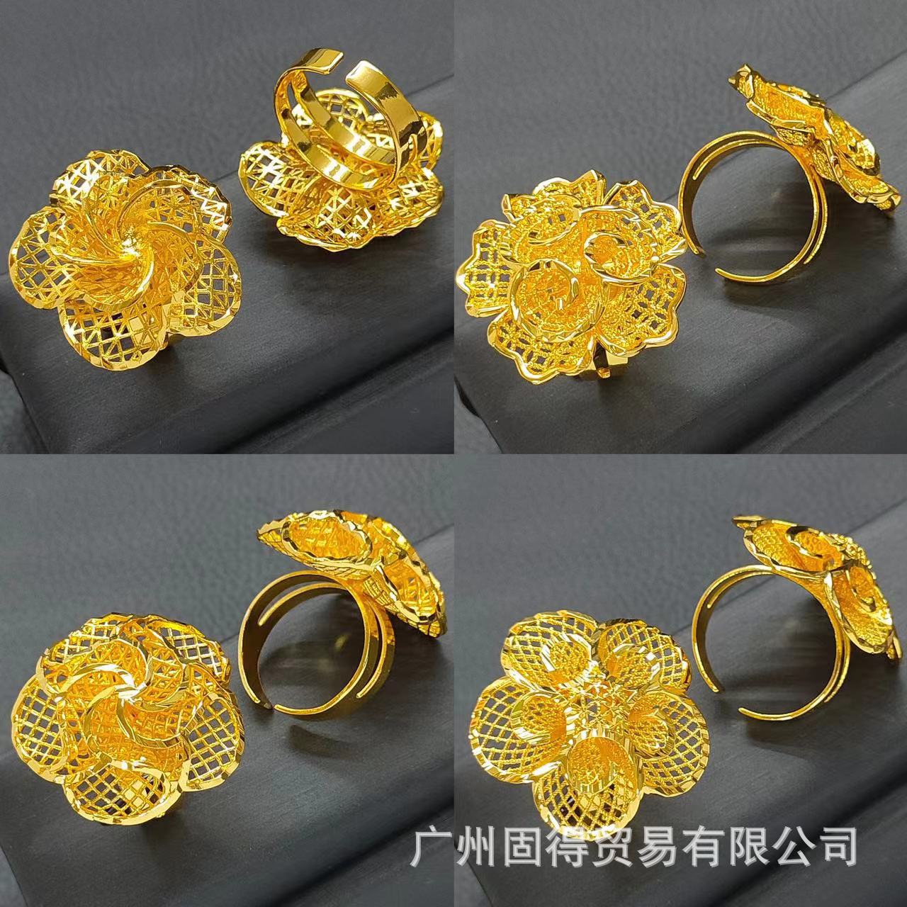 Cross-border hot sale 24k gold-plated flower ring female Middle East Dubai India Nigeria opening ring does not fade