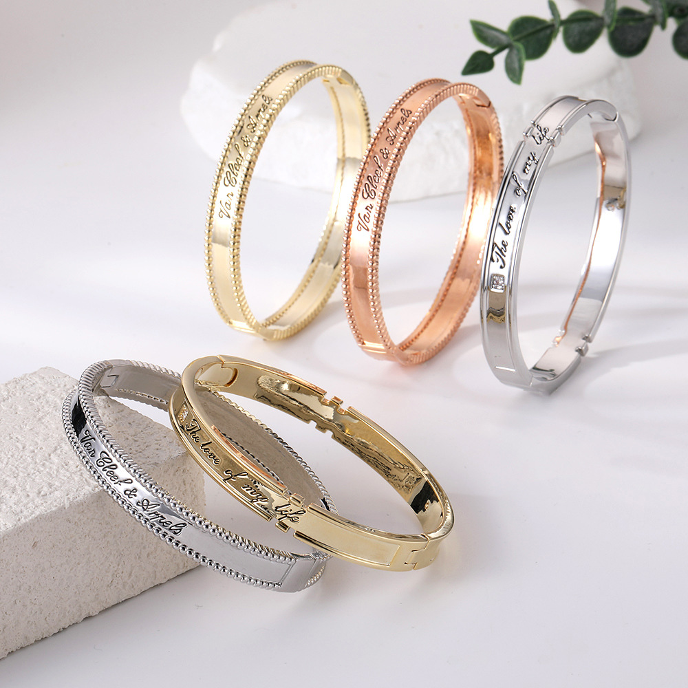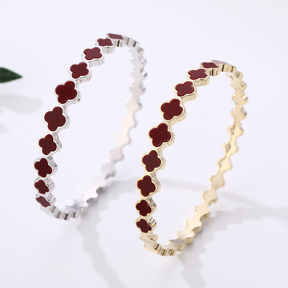 New Four-Leaf Clover Bracelet Copper Plated Real Gold High Color Retention Jewelry Bracelet Simple Cross-Border Popular Women's Jewelry Wholesale