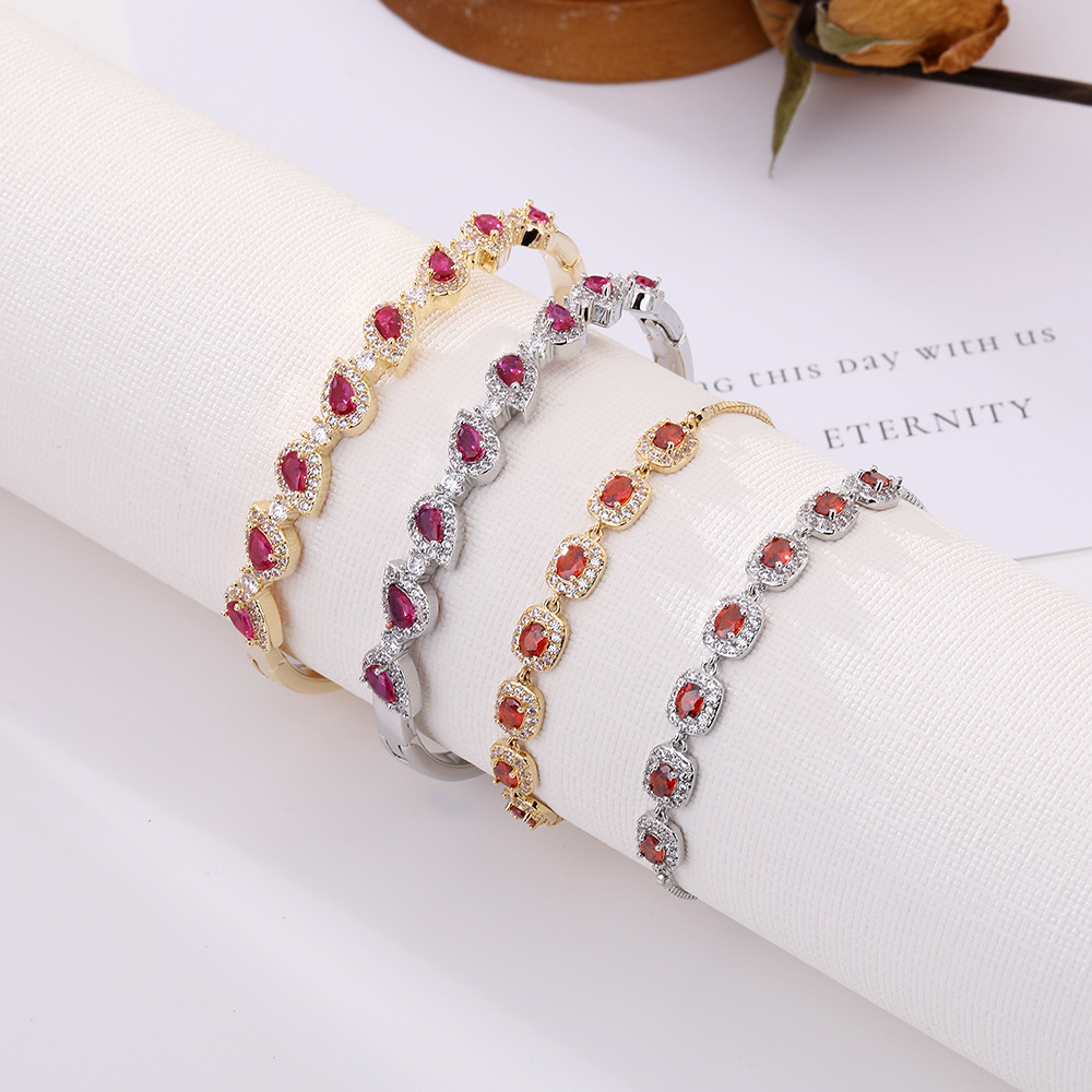 Retro Light Luxury Red Gem Bracelet Bracelet Women's High-end European and American Jewelry Claw with Zircon Stacked Wind Bracelet for Women