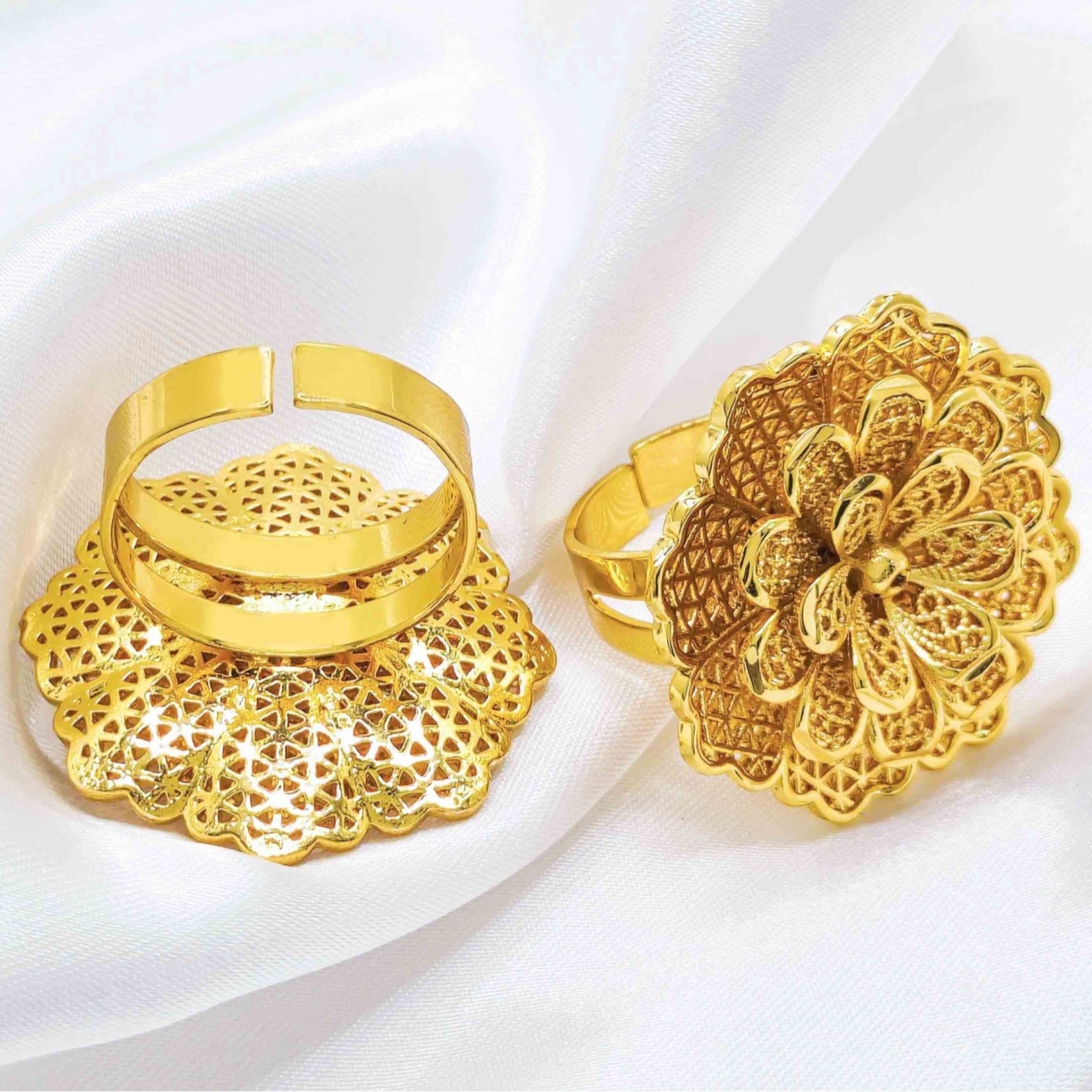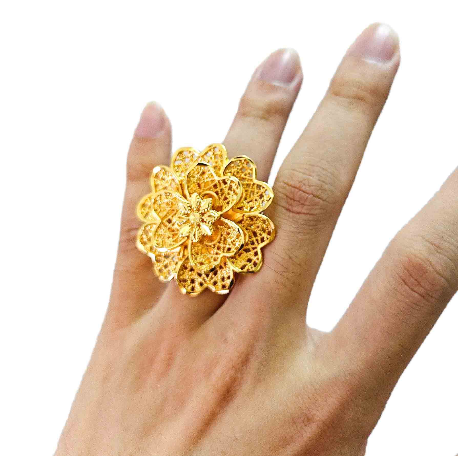 Cross-Border Fashion 3D Large Flower Gold-Plated Ring Cut Out Middle East Dubai Jewelry Vietnam Sand Gold Ring Wholesale