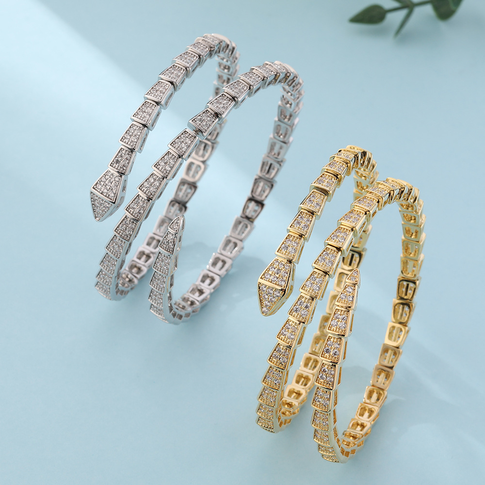 Full Circle Full Diamond Three-Layer Elastic Snake Bracelet Bracelet High-End Fashion High-End Jewelry Cross-Border Popular Snake-Shaped Bracelet