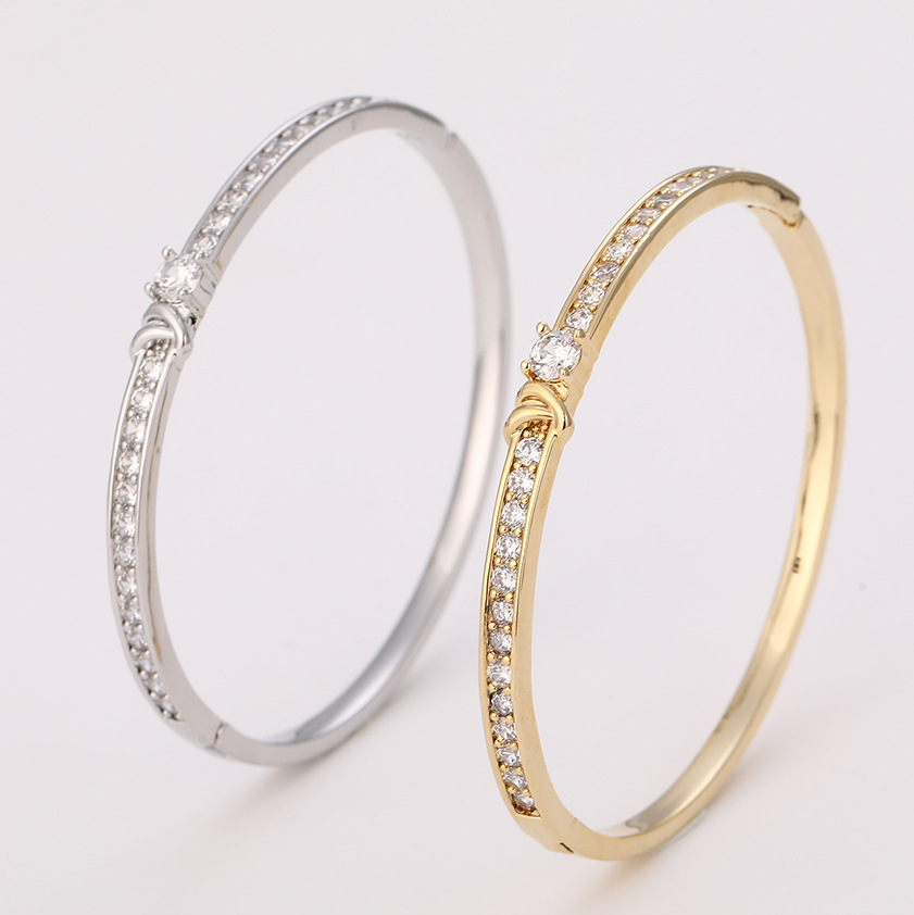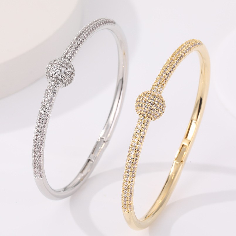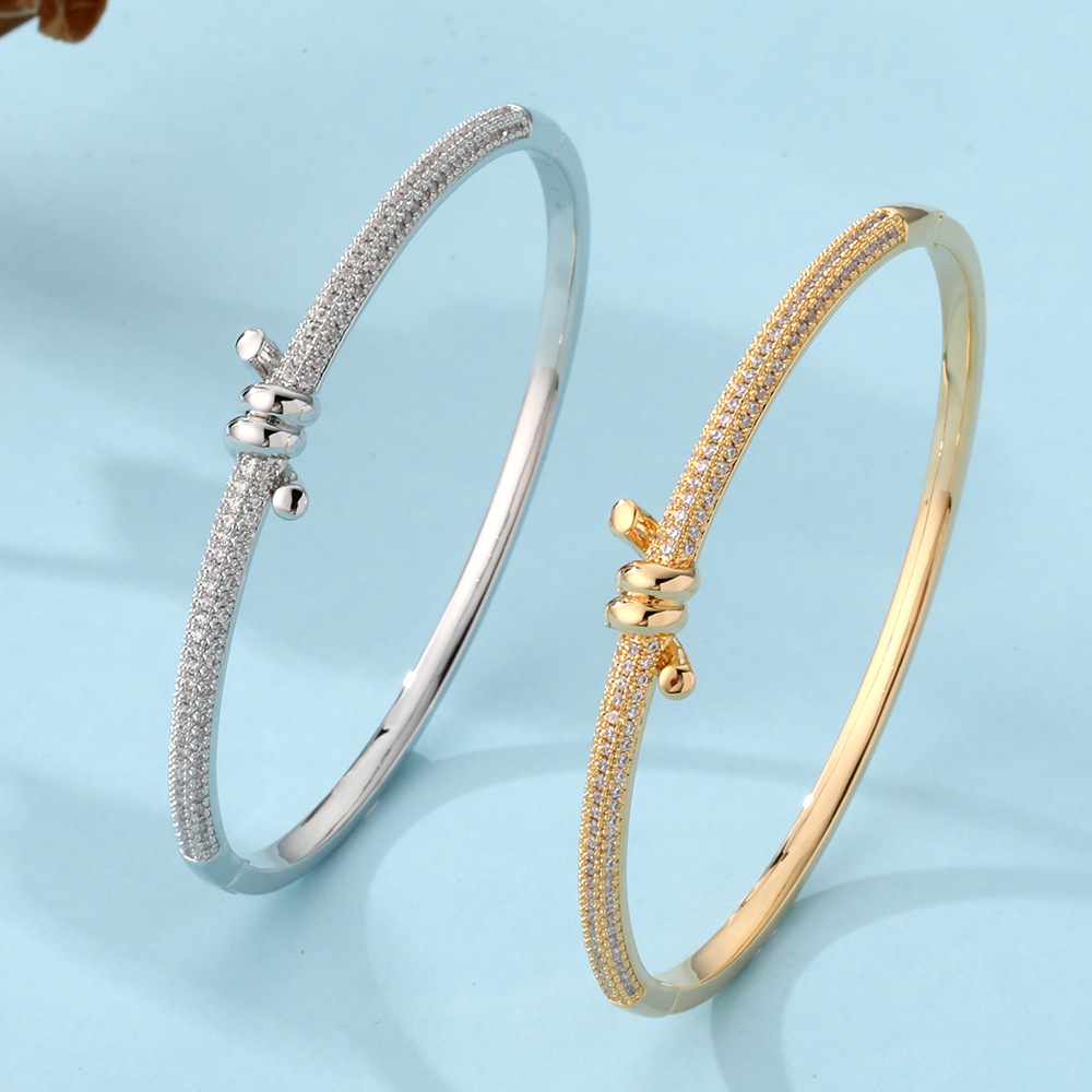 Crossed Bracelet with Small Waist and Diamond Knots, Baby's Breath, White Golden-Plated Light Luxury Fashion Bracelet, Full of Diamonds, High-End Jewelry