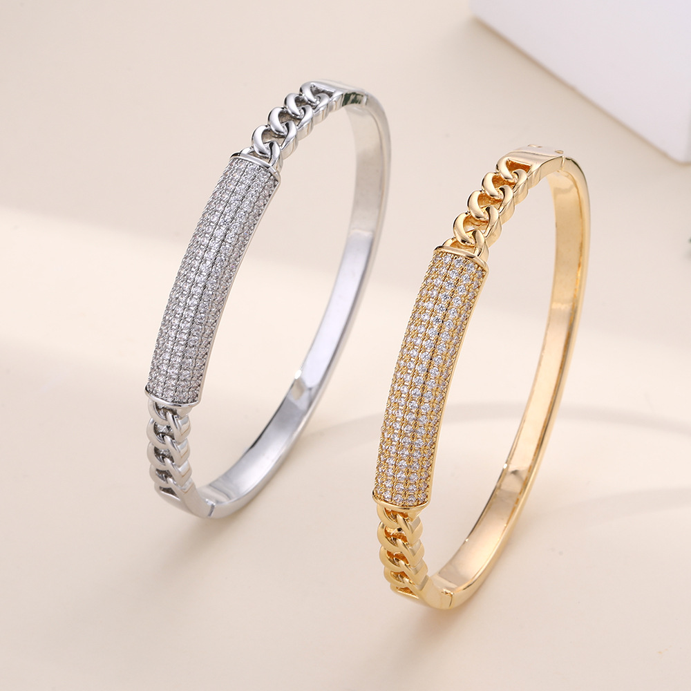 Cross-Border Popular Wide Version Baby's Breath Bracelet Light Luxury High-End Jewelry Bracelet Fashionable Diamond-Encrusted Daily Wear Bracelet