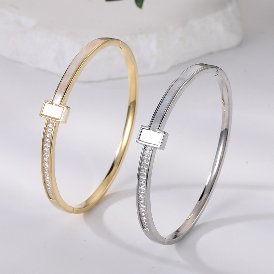 Natural Shell Cz Bracelet Cross-Border European and American Popular Jewelry Bracelet 14K Real Gold Electroplated Environmentally Friendly Copper Bracelet