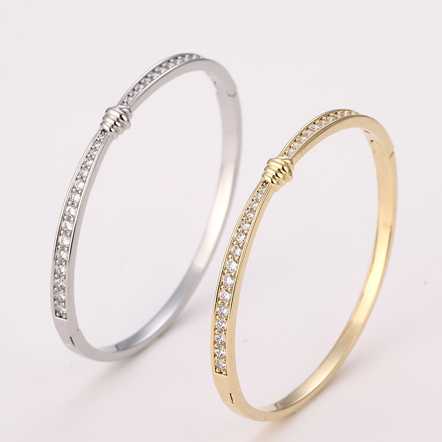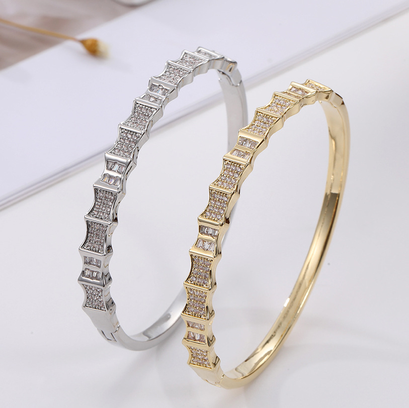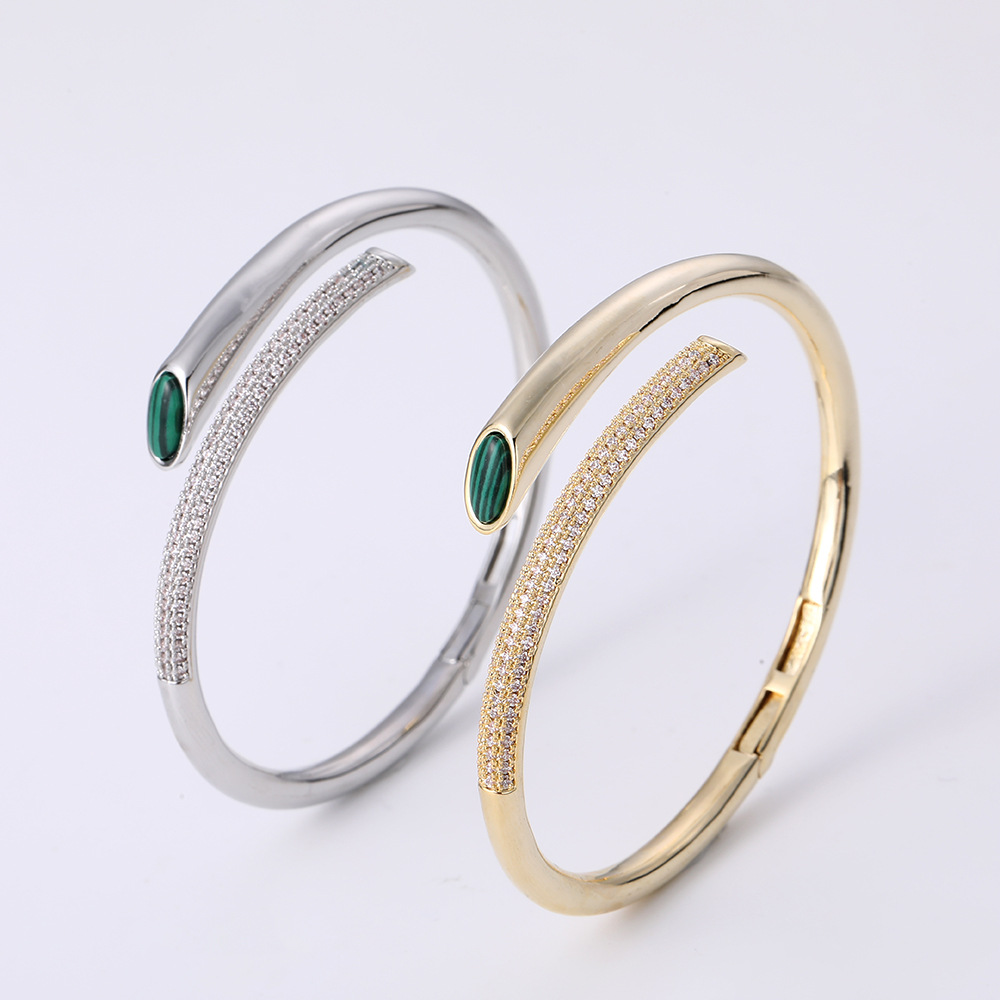Two-color Electroplated Snake Bracelet Simple Environmental Protection Copper Diamond Closed Bracelet New Product Copper Gold Plated Zircon Jewelry