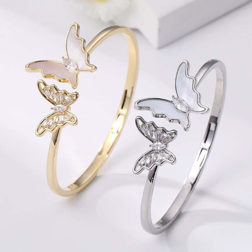 2024 New Arrival Shell Zircon Butterfly Bracelet Women's Color-proof Hollow Design Bracelet Decorations Personalized Fashion Open Bracelet