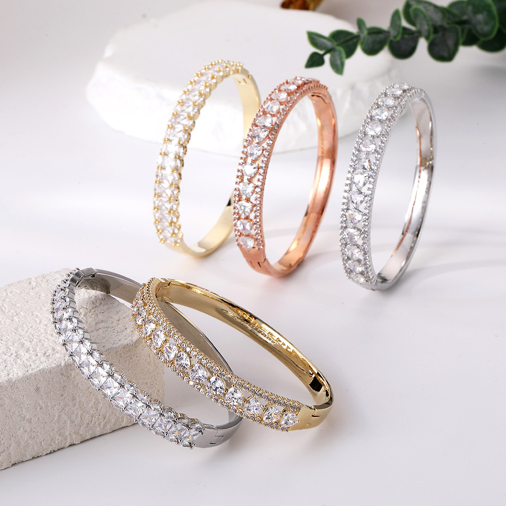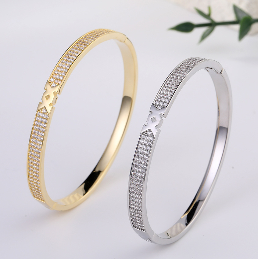 Bright Face Full Diamond Cross Opening Bracelet Zircon Gestars Cross-border Explosions Bracelet Bracelet Female Brass Plated with Real Platinum