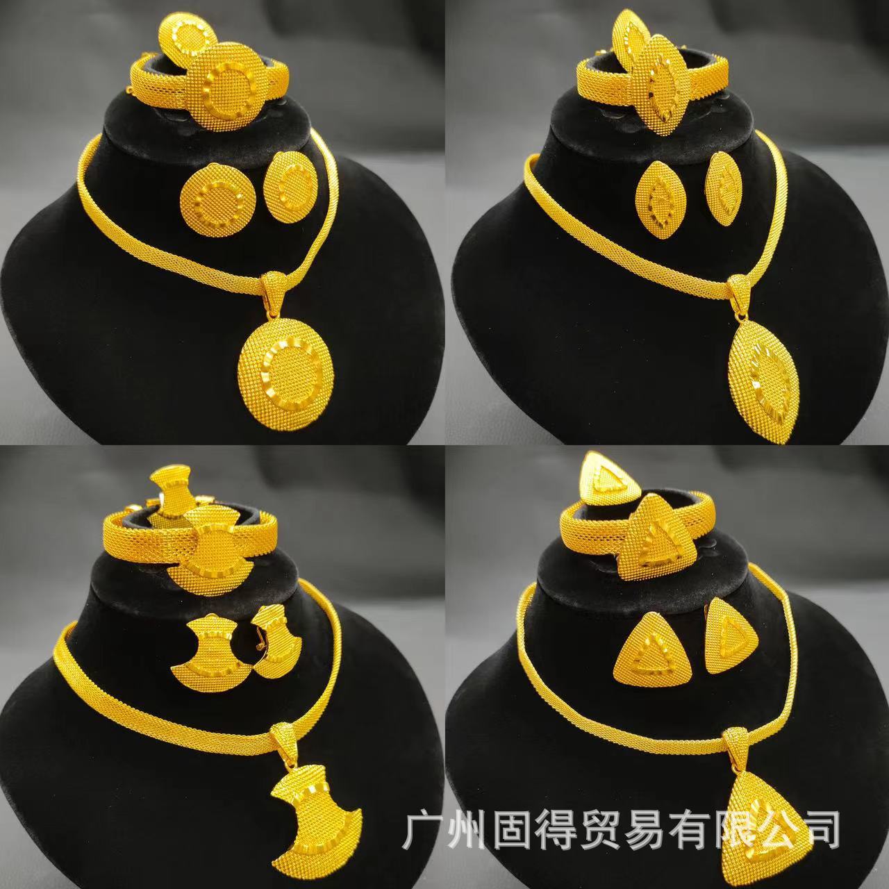 24K Dubai Gold Alloy Pendant Jewelry Set European and American African Popular Necklace Four-Piece Set Earrings Bracelet Ring