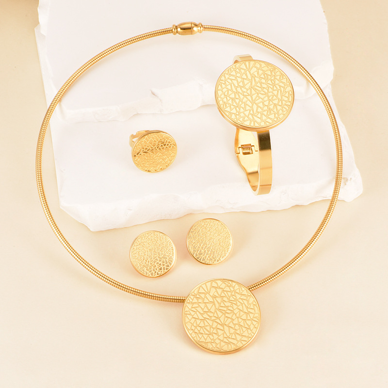 Cross-Border Dubai Hot-Selling Set Accessories Necklace Bracelet Earrings Birthday Gift Bridal Jewelry Stainless Steel New Style for Women