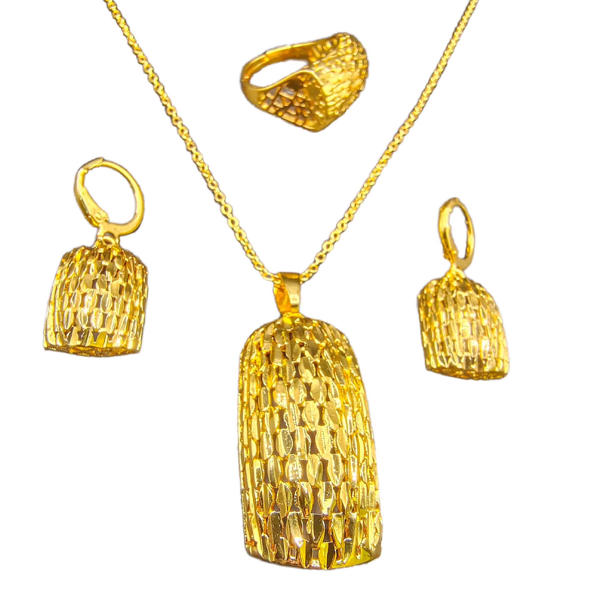 Cross Border 24K Gold Dubai Bride Necklace Earrings Bracelet Ring India Nigeria Middle East Necklace suit Batch