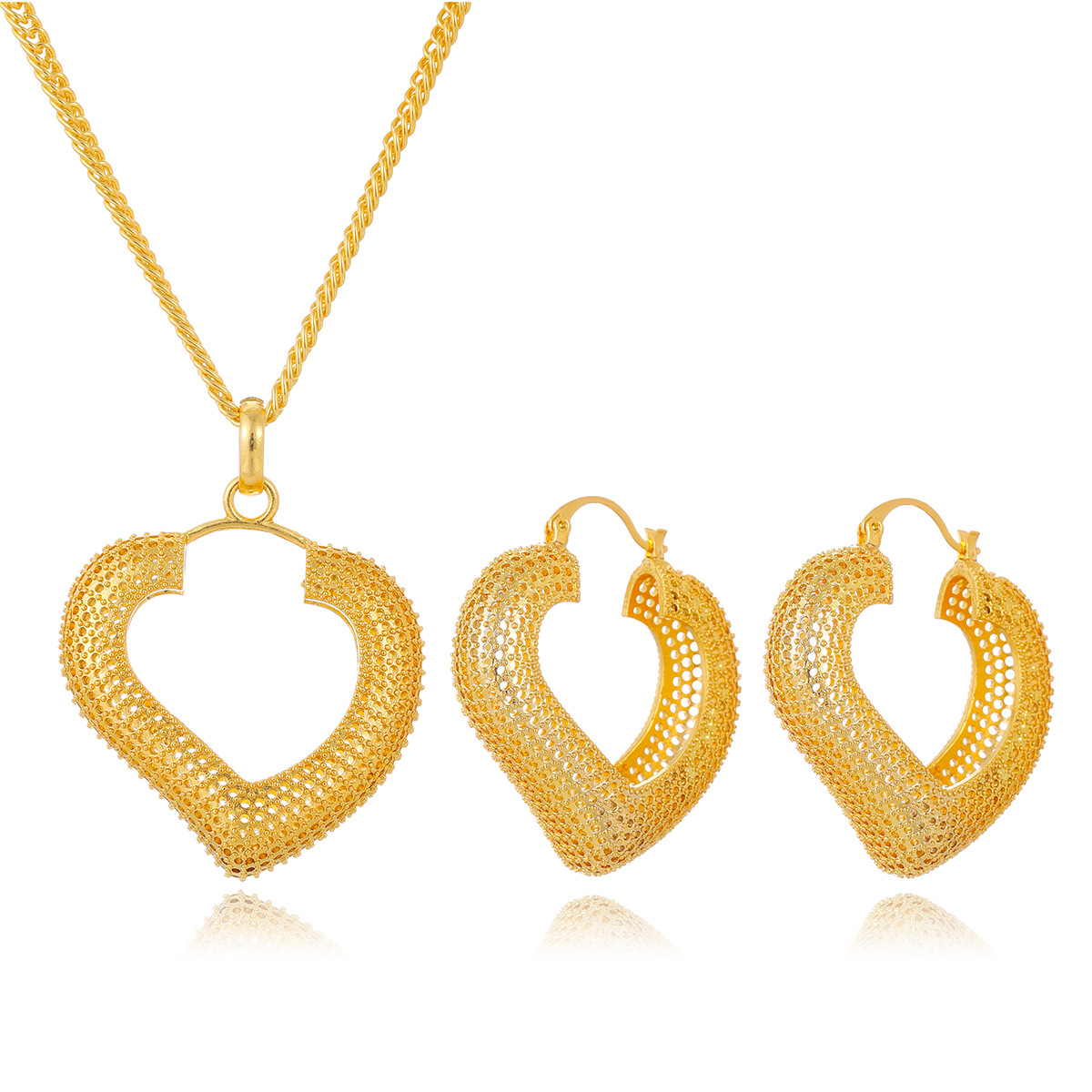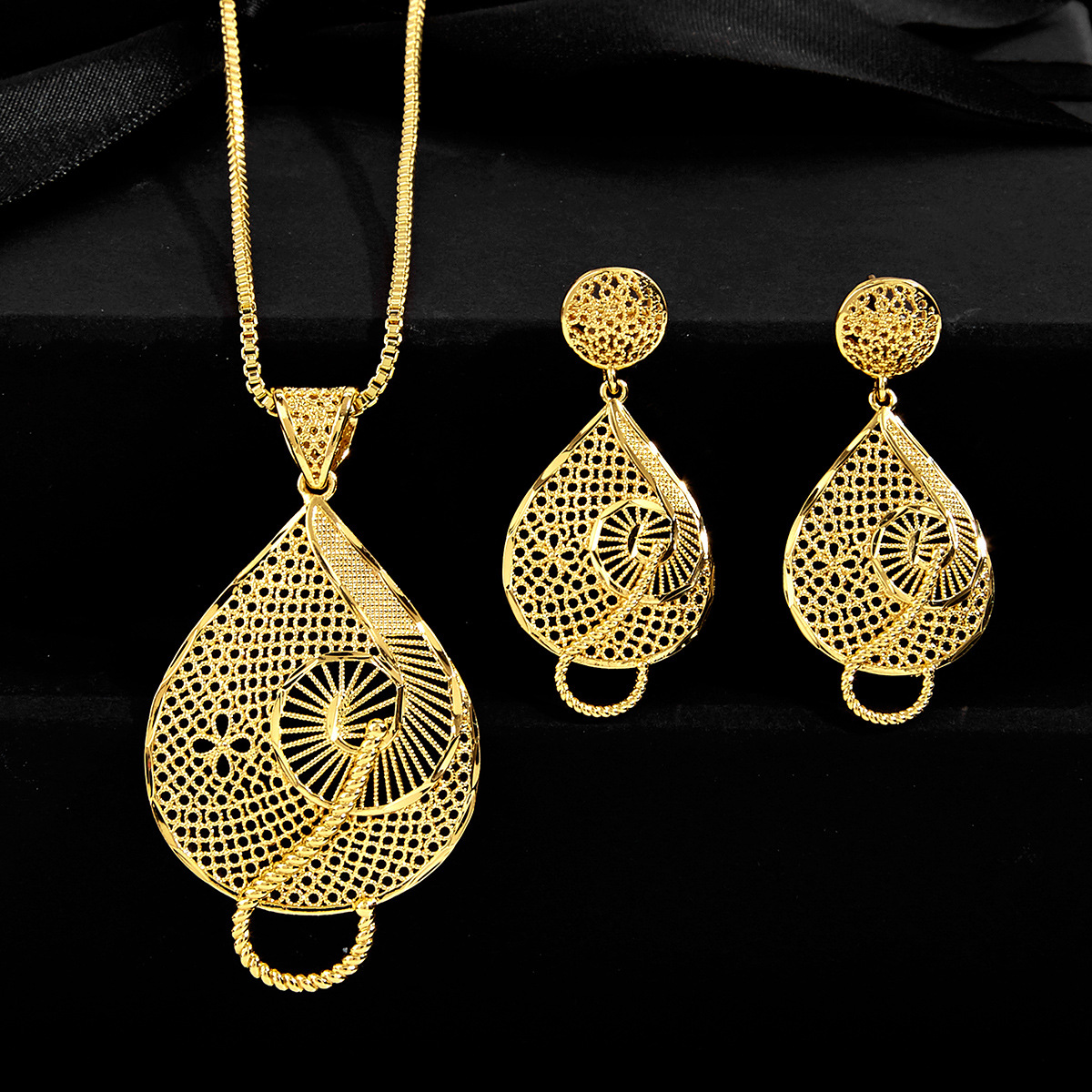 Cross-Border Fashion 24K Gold-Plated Two-Piece Copper Jewelry Set Indian Dubai Jewelry Sand Gold Geometric Necklace Earrings