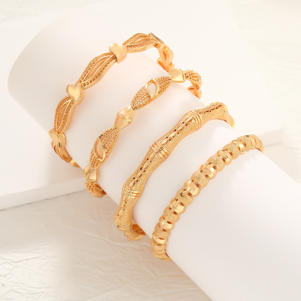 Cross-Border Fashion Gold-Plated Bracelets Dubai Wedding Indian Nigerian Women's Bridal Sand Gold Bracelets Jewelry Wholesale
