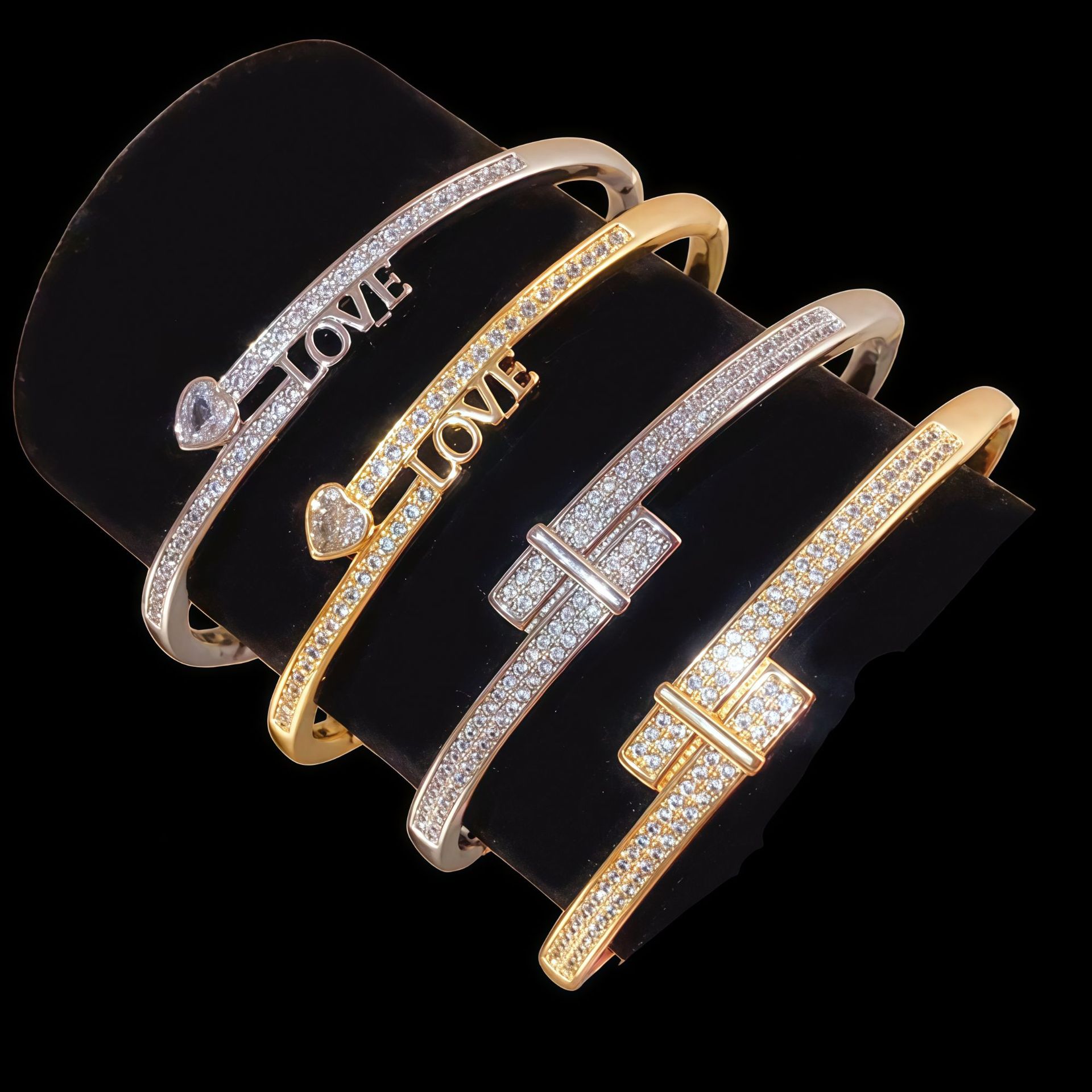 2025 Cross-Border European and American Zircon t Bracelet Accessible Luxury Love Heart Letter Bracelet Dubai Ladies Elegant and High-End Sense