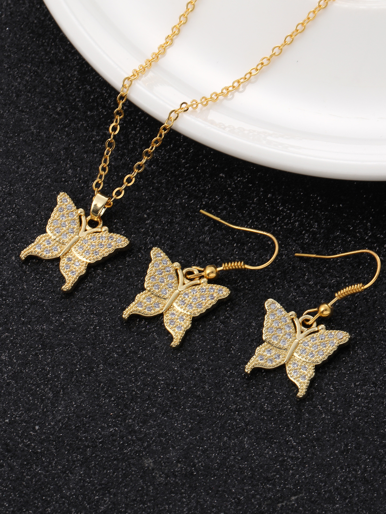 Jewelry suit Women Fashion Dubai Copper Set AAA Zircon Exquisite Butterfly Women Earrings Necklace Engagement Gift