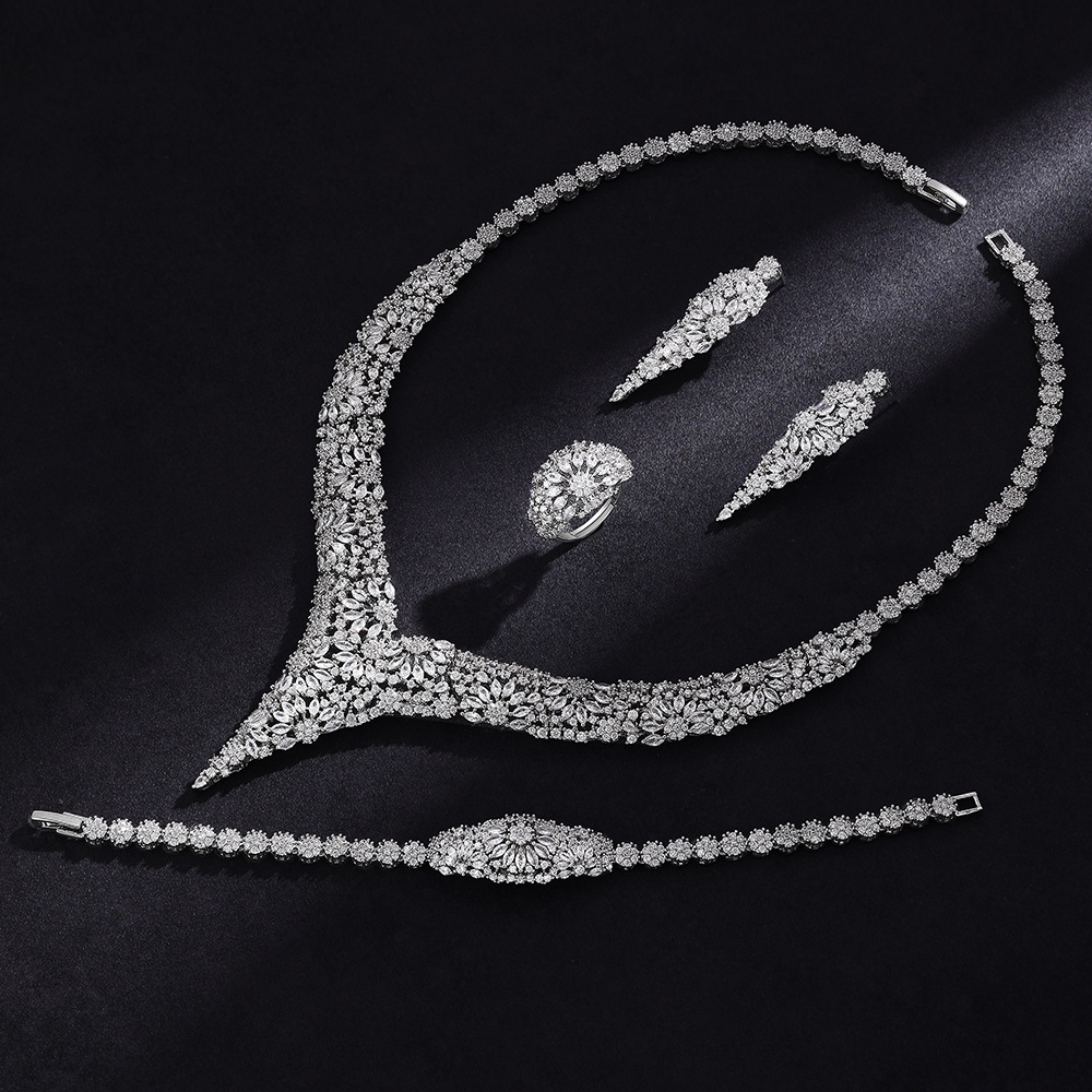 Middle East Dubai Bridal Jewelry Set Diamond Drop Necklace Earrings Bracelet Four-Piece Set 3A Exquisite Wedding Accessories