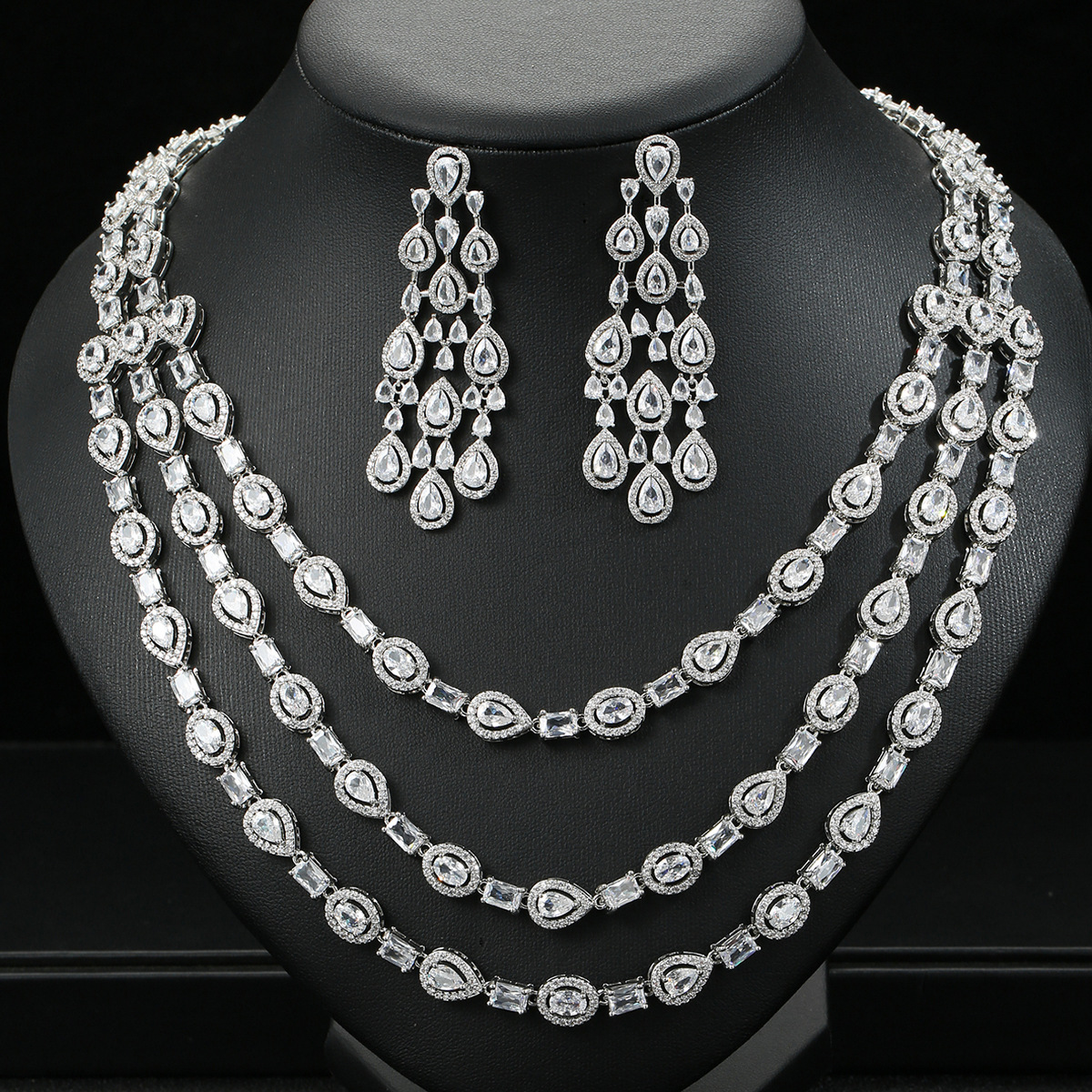 Dubai Exaggerated Luxury Zircon Necklace Earrings suit Bridal Wedding Dress Dinner High Jewelry Festival Wear