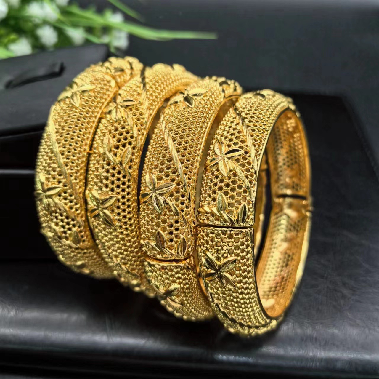 24K Gold-Plated Metal Bracelet Dubai Bride Indian Nigerian Women's Wedding Sand Gold Bracelet Jewelry Wholesale